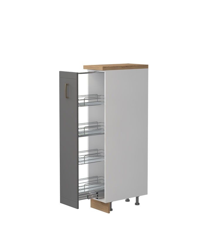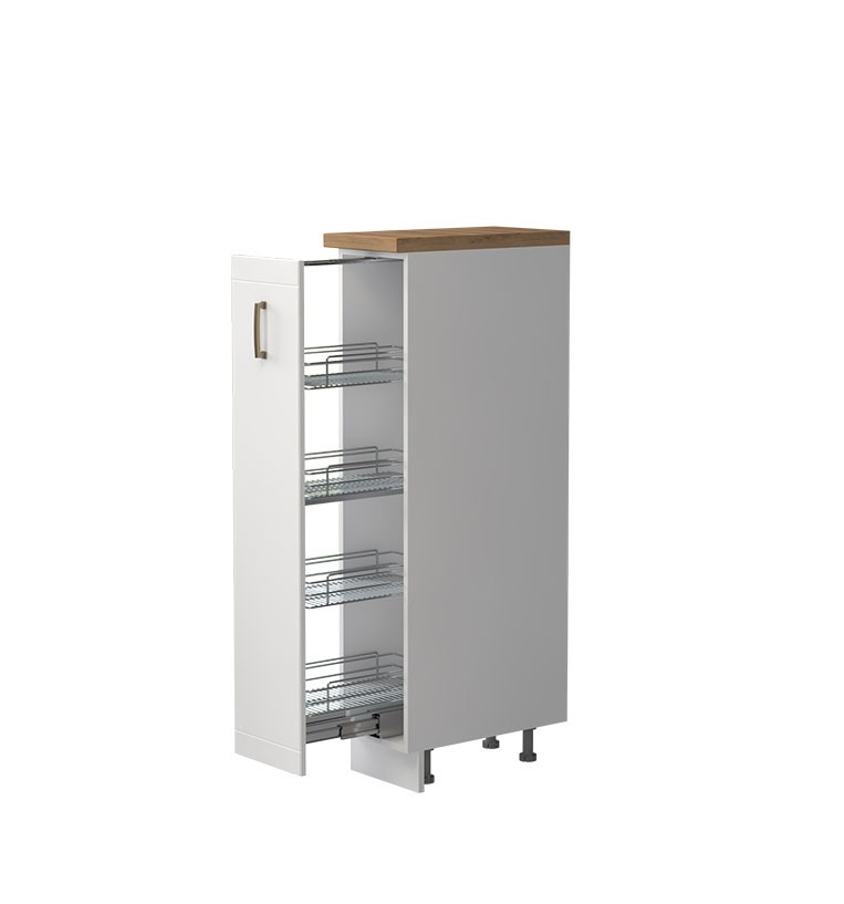 Visoki element za kuhinju TARA ima jednostrana vrata na izvlačenje sa funkcijom tihog zatvaranja i četiri metalne police, na koje možete ostaviti hranu i posude. Dostupan je u bijeloj i grafit boji.