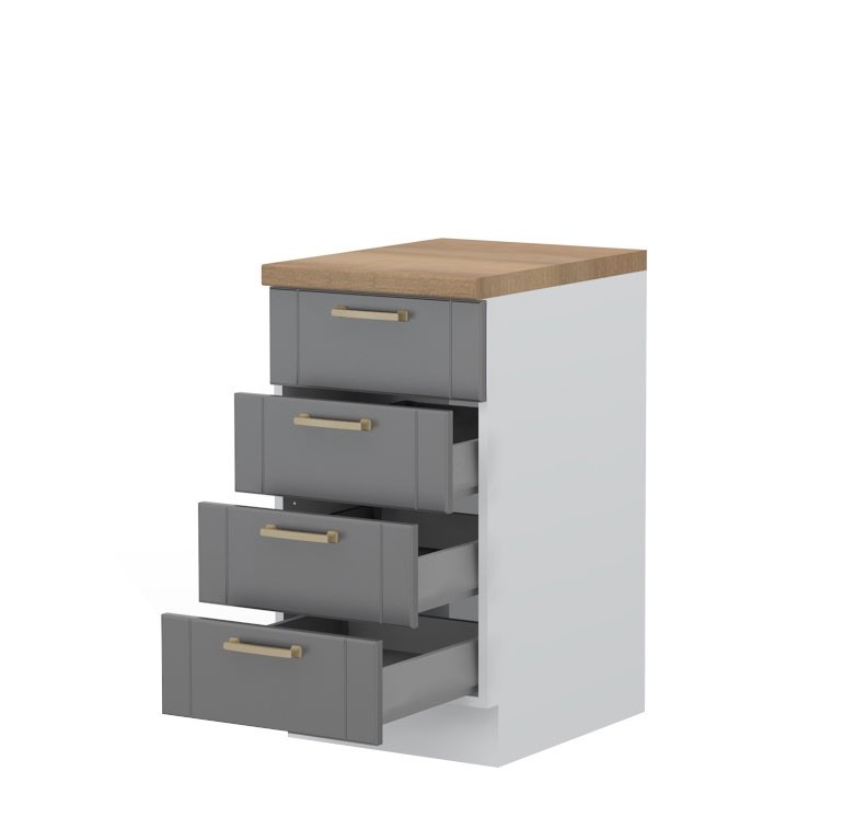 Element za kuhinju TARA sadrži 4 metalne ladice, u koji možete ostaviti pribor za jelo i razna kuhinjska pomagala. Sve ladice imaju funkciju tihog zatvaranja, koja sprječava nastajanje ogrebotina i oštećivanje, te pomaže pri svakodnevnoj uporabi. Dostupan je u bijeloj i grafit boji.