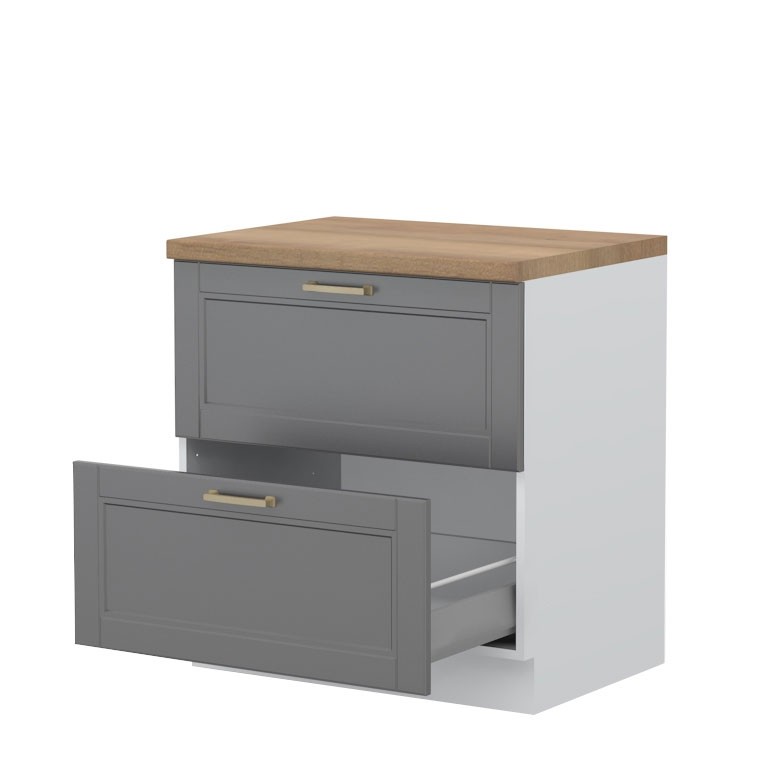 Element za kuhinju TARA sadrži 2 metalne ladice, u koje možete ostaviti posude, hranu i razne predmete. Ladice imaju funkciju tihog zatvaranja, koja sprječava stvaranje ogrebotina i oštećenja, te pomaže pri svakodnevnoj uporabi. Dostupan je u bijeloj i grafit boji.