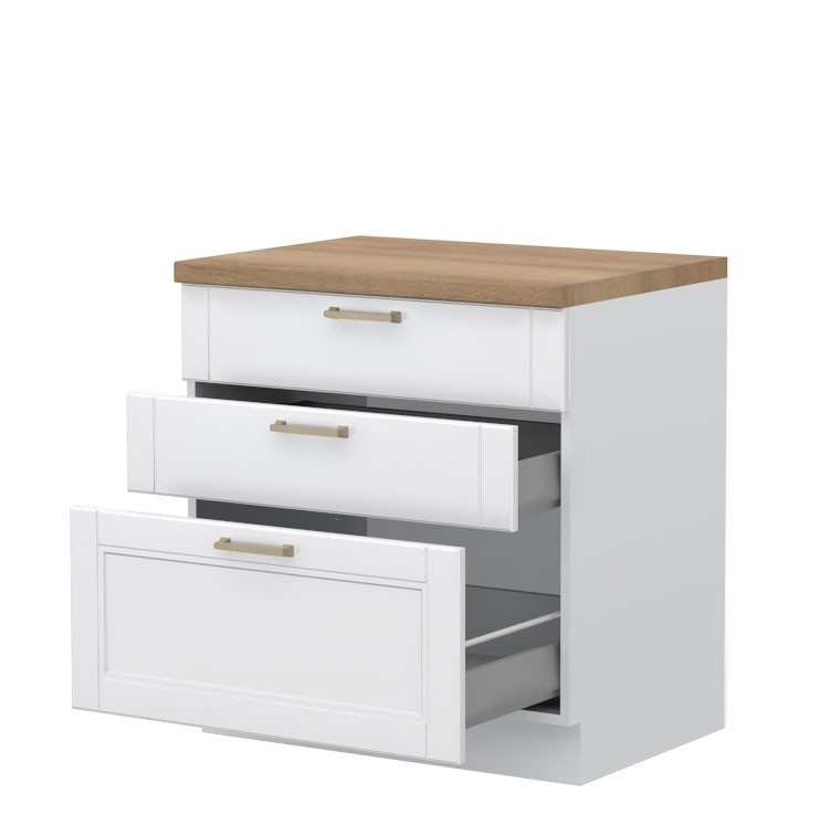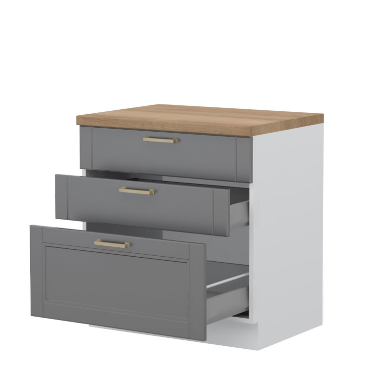 Element za kuhinju TARA sadrži 3 metalne ladice, u koje možete ostaviti posude, hranu i razne predmete. Ladice imaju funkciju tihog zatvaranja, koja sprječava stvaranje ogrebotina i oštećenja, te pomaže pri svakodnevnoj uporabi. Dostupan je u bijeloj i grafit boji.