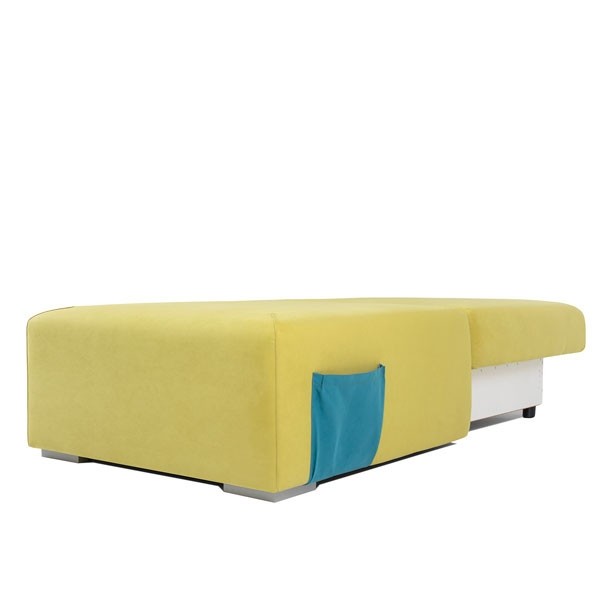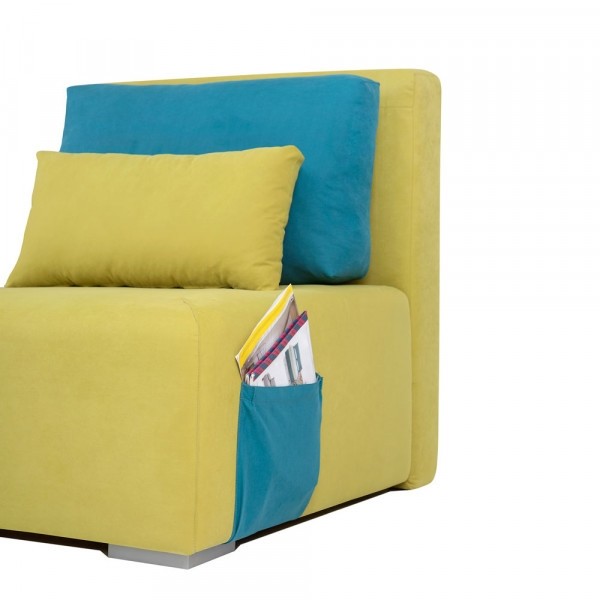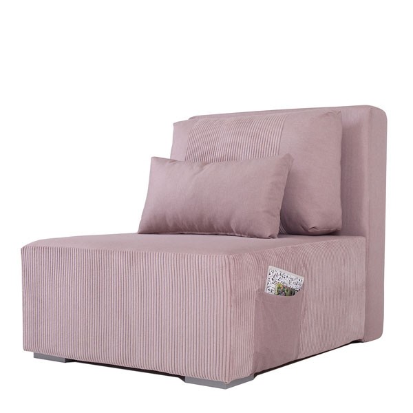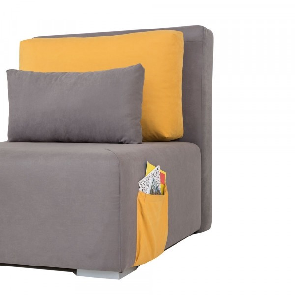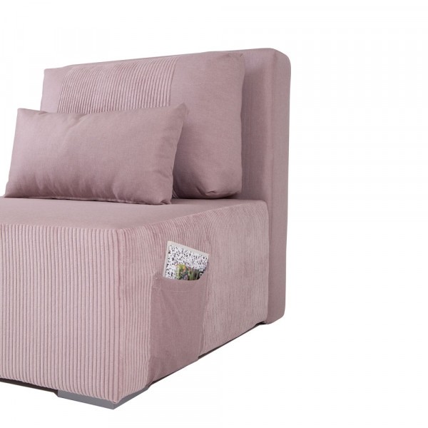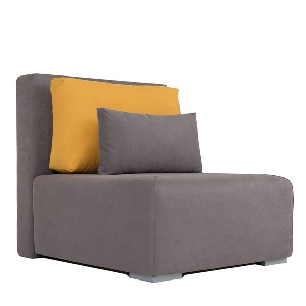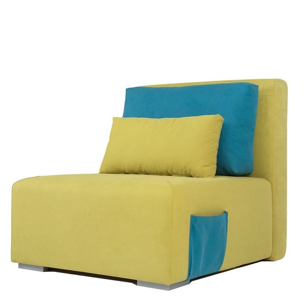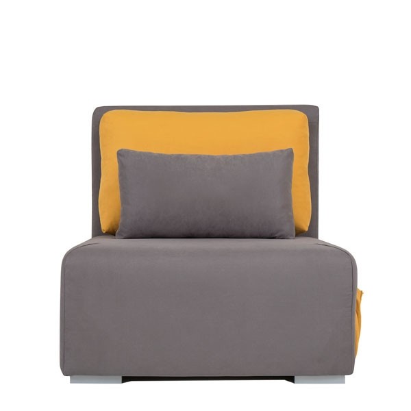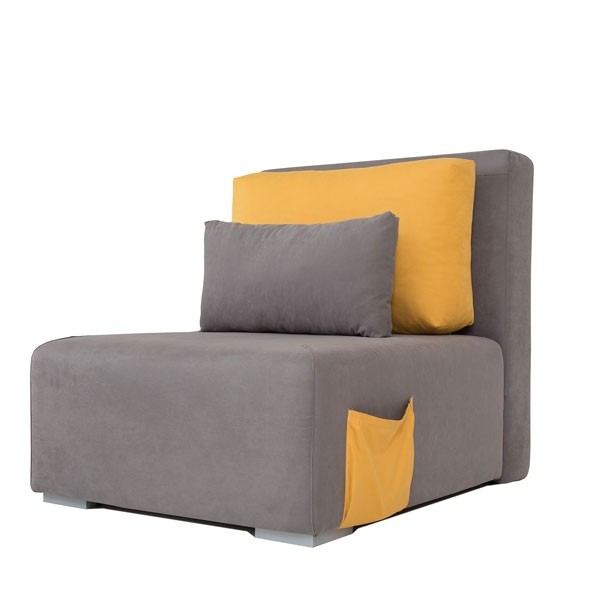 Fotelja AMBI je moderna i praktična fotelja, koja će vaš prostor napraviti živ. Fotelja je tapecirana u kvalitetnu tkaninu. Ima žičnate opruge i gustoću pjene PU 25. Na raspolaganju je u tri bojne kombinacije. Fotelja se može jednostavno promijeniti u ležište. Pod ležištem ima sanduk, gdje možete pospremiti različite stvari i predmete. Uključuje i dva jastuka, jedan manji i jedan veći. Dimenzija ležišta je 90x190x42 cm. Pogledajte si još kauč iz istog programa.