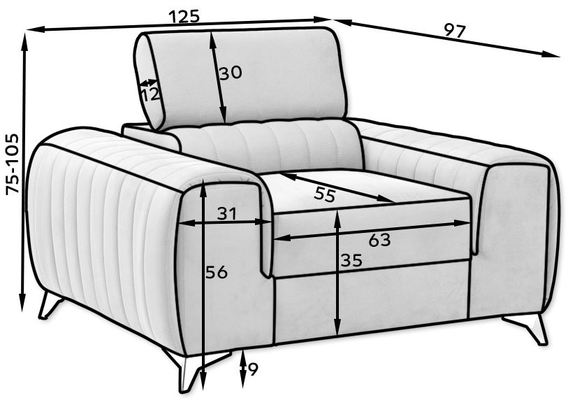 Fotelja Laurence je elegantan i udoban komad namještaja koji oduševljava ne samo svojim dizajnerskim izgledom, već i izvrsnim karakteristikama. Dizajnirana s mišlju o maksimalnoj udobnosti, ova fotelja postat će prava oaza opuštanja u vašem interijeru. Impresivne dimenzije sa širinom od 125 cm i dubinom od 97 cm osiguravaju puno prostora za sjedenje. Visina sjedala od 35 cm omogućuje udoban položaj sjedenja, a dubina sjedala od 55 cm jamči odgovarajuću potporu leđima i ugodno držanje. Laurence je dizajnirana za korisnike različitih visina jer je visina naslona podesiva u rasponu od 30 do 45 cm, što omogućuje optimalnu potporu kralježnici. Također je opremljena podesivim naslonom za glavu koji pruža prilagođenu potporu vratu i glavi za dodatnu udobnost tijekom opuštanja.