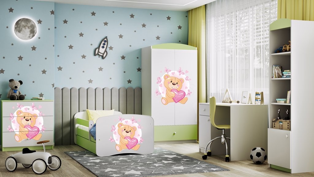 Garderobni ormar Dreamy medvjedić praktičan je izbor za dječju sobu jer spaja preglednu pohranu odjeće i drugih potrepština u jednom komadu namještaja. Dostupan je u više boja pa ga je lakše uskladiti s različitim dječjim sobama. Izrađen je od kvalitetne MDF ploče u kombinaciji s oplemenjenom ivericom, što osigurava dugotrajnost i dobru očuvanost.