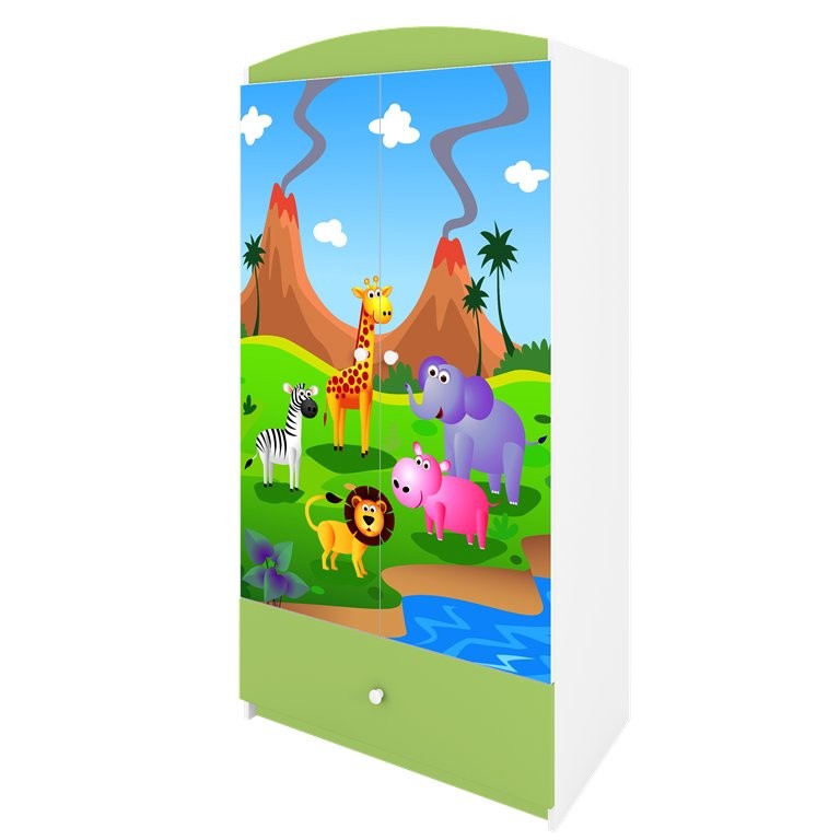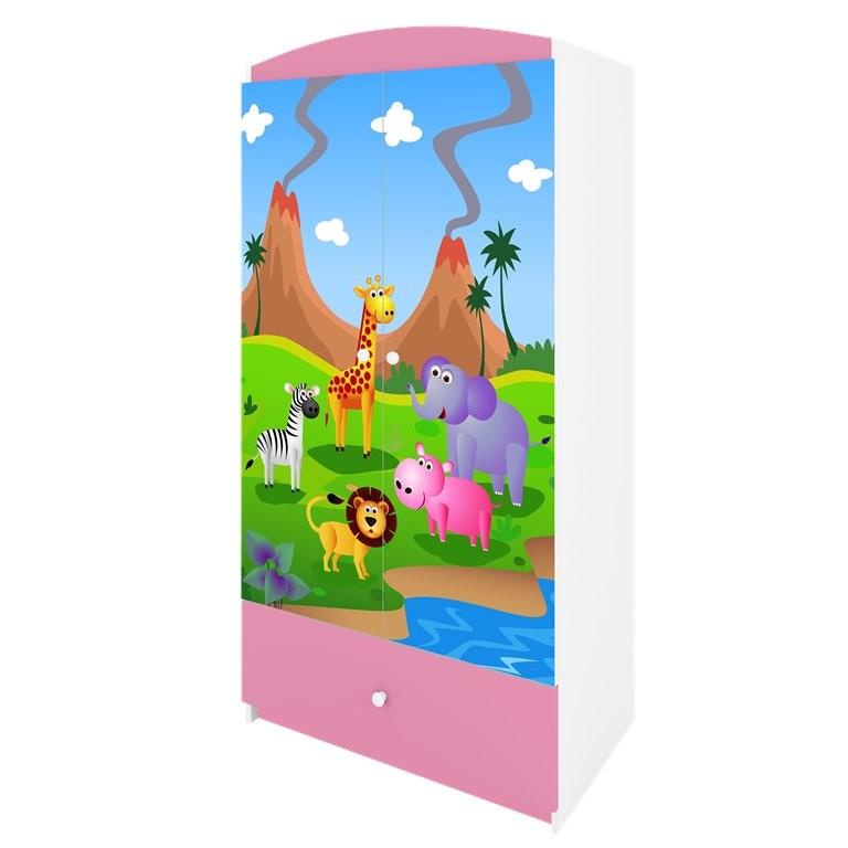 Garderobni ormar Dreamy safari praktičan je izbor za dječju sobu jer spaja preglednu pohranu odjeće i drugih potrepština u jednom komadu namještaja. Dostupan je u više boja pa ga je lakše uskladiti s različitim dječjim sobama, a izrada od oplemenjene iverice u kombinaciji s kvalitetnim MDF-om osigurava dugotrajnu očuvanost i bezbrižnu uporabu namještaja.