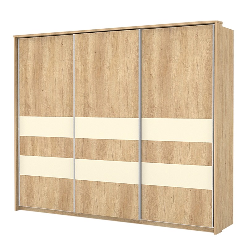 Garderobna omara Kalla Comfort z drsnimi vrati je nepogrešljiv element vsake spalnice, saj je izjemno funkcionalna. Z dodatno opremo si lahko ustvarite še bolj funkcionalno omaro, ki je prilagojena vašim potrebam. Na voljo je v barvni kombinaciji bež in nebraska hrast. Notranjost vključuje tri velike police in tri dolge palice za obešanje.