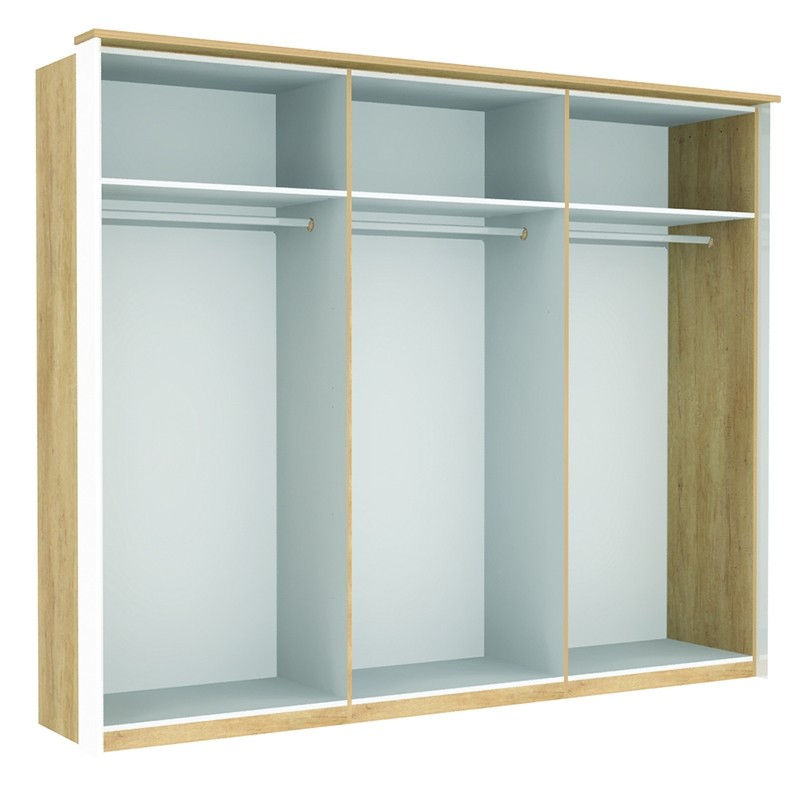 Garderobna omara Kalla Modern je izjemno prostorna zato boste vanjo definitivno lahko pospravili vsa vaša oblačila, posteljnino, modne dodatke in ostale poljubne izdelke. Omara ima tri velike police in tri dolge palice za obešanje.