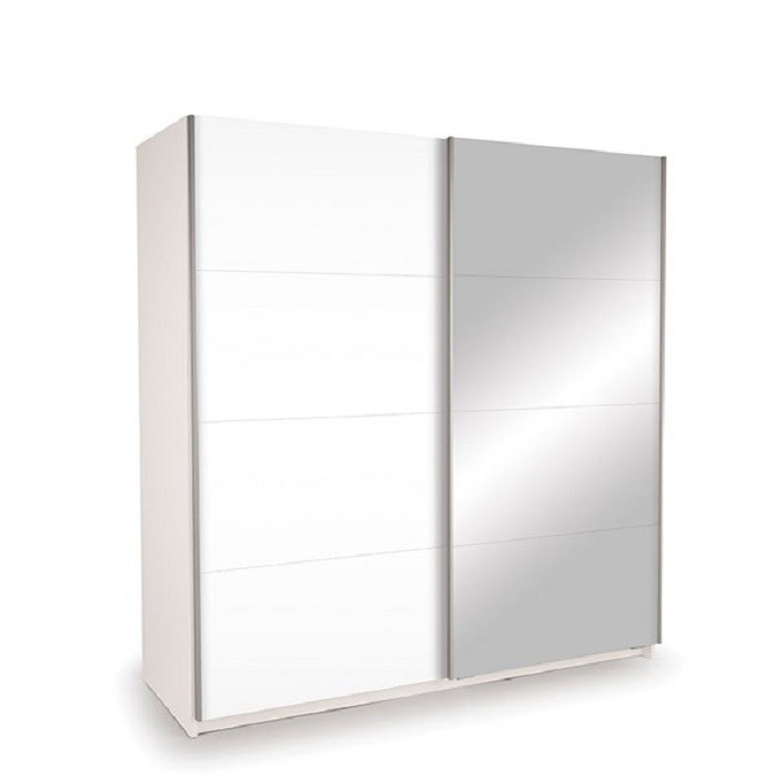 Garderobni ormar ECO ZLBT 14 je dvodijelni ormar s kliznim vratima u bijeloj boji s ogledalom. U unutrašnjosti je ormar podijeljen na dva dijela. Na svakoj strani je palica za vješalice, a iznad nje stoji polica. S doplatom je moguća i narudžba seta od tri polica.