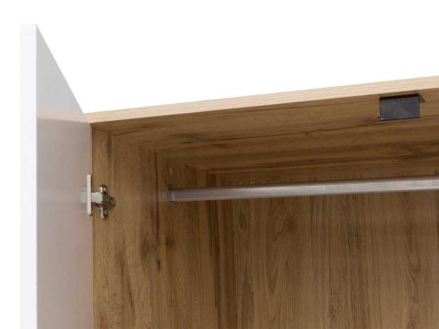 Nježna boja s dovršenim i elegantnim dizajnom će ostvariti atmosferu. Garderobni ormar ELLE je na raspolaganju u prekrasnoj kombinaciji bijele i hrast boje. Odlično će se uklopiti u baš svaki prostor.
