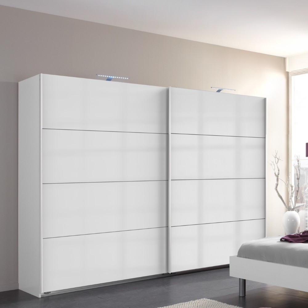 Ormar LOLITA WHITE je široki dvodijelni ormar s kliznim vratima koji će se svojim elegantnim njemačkim dizajnom lijepo uklopiti u svaku prostoriju. Moderna bijela staklena vrata će vas impresionirati jer su iznimno lijepa i elegantna.