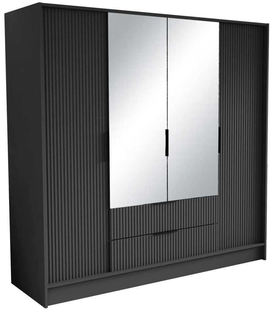 Garderobni ormar s ogledalom Norel 200 cm (grafit) predstavlja elegantno i suvremeno rješenje za pohranu vaše odjeće i dodataka. Valovita struktura i veliko ogledalo prostoru dodaju dubinu i funkcionalnost. Ormar je dostupan u više kombinacija boja i dimenzija, što omogućava potpunu prilagodbu vašim potrebama.