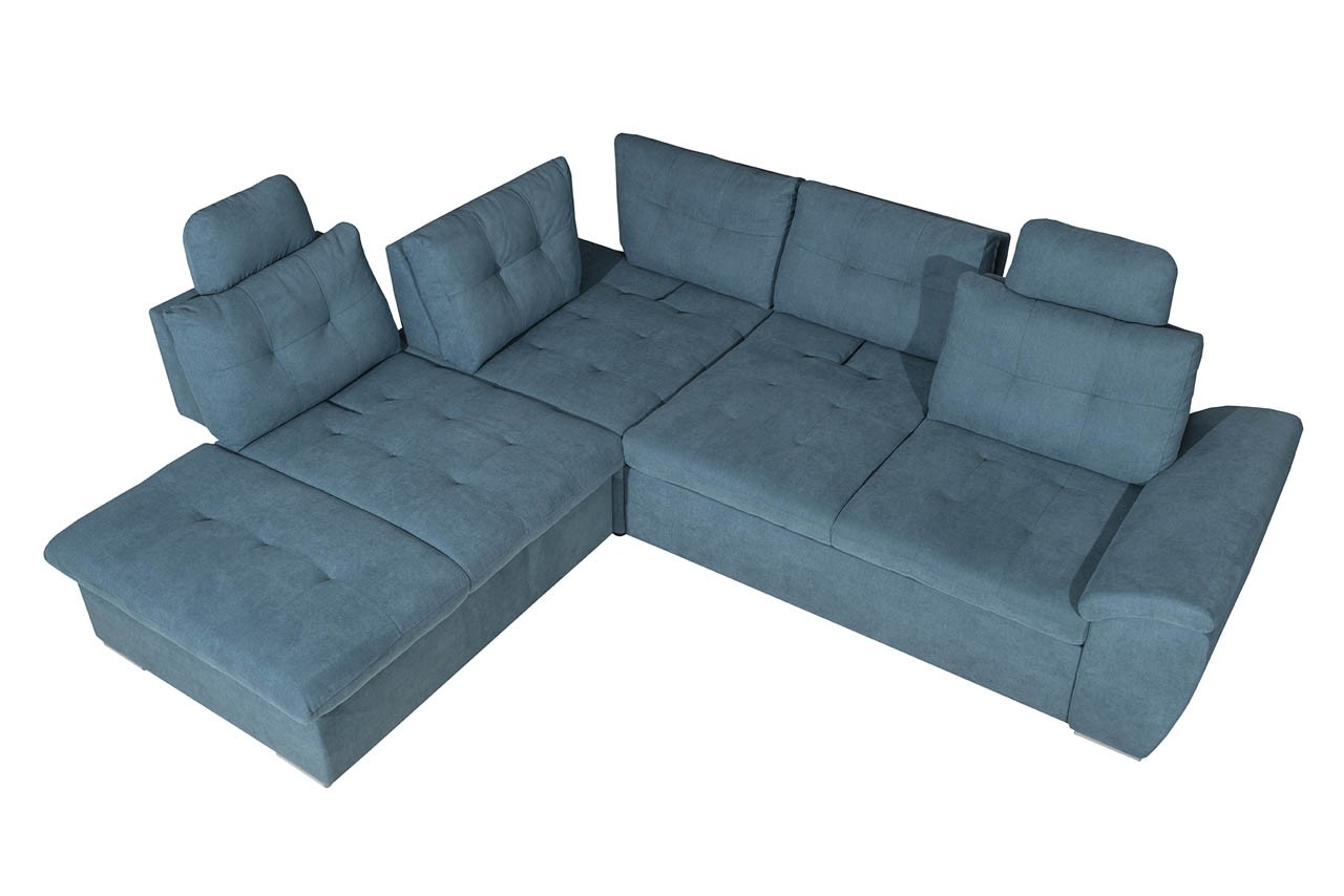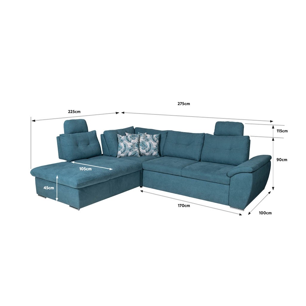 Kutni kauč Cascada dostupan je u modernom izgledu u nježnoj plavoj boji koja oživljava dnevni boravak. Cijela garnitura je odjevena u mekanu tkaninu, a nasloni sjedala mogu se pomicati naprijed-natrag, dajući dodatni prostor na sjedalu. Sadrži i pomoćni ležaj koji nije namijenjen za svakodnevnu uporabu. Veličina pomoćnog ležaja je 145x230 cm. Garnitura ima maksimalnu nosivost od 100 kg po pojedinačnom sjedištu.