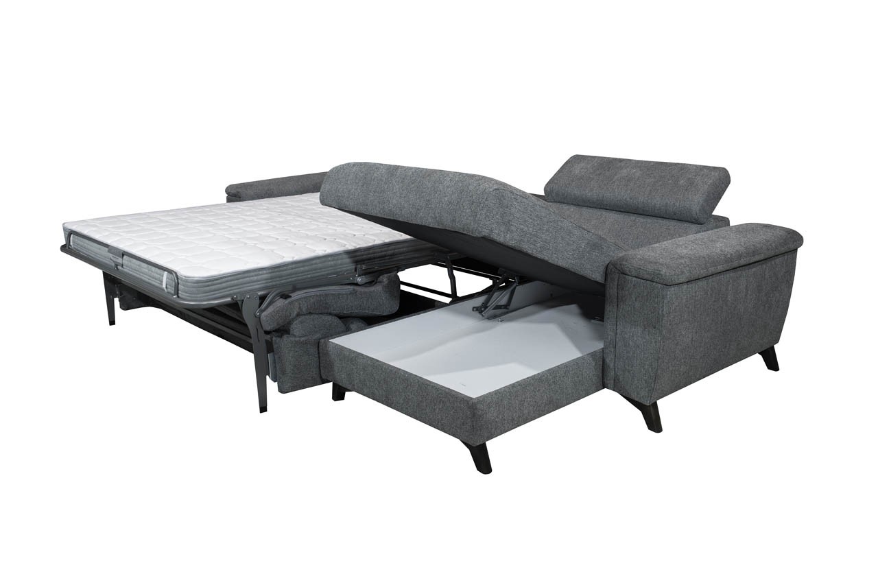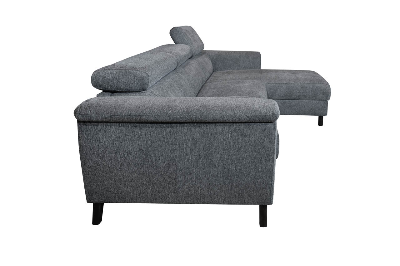 Kutna garnitura Marcis elegantna je i dostupna u sivoj boji koja se savršeno uklapa u svaki dnevni boravak. Garnitura je potpuno tapacirana u tkaninu i ima sjedalo ispunjeno pjenom koja omogućuje opuštanje za koje ne želite da se završi. Krevet na izvlačenje je dimenzija 190x140 cm. Maksimalno opterećenje je 100 kg po sjedalu. Garnitua stoji na drvenim nogama u crnoj boji.
