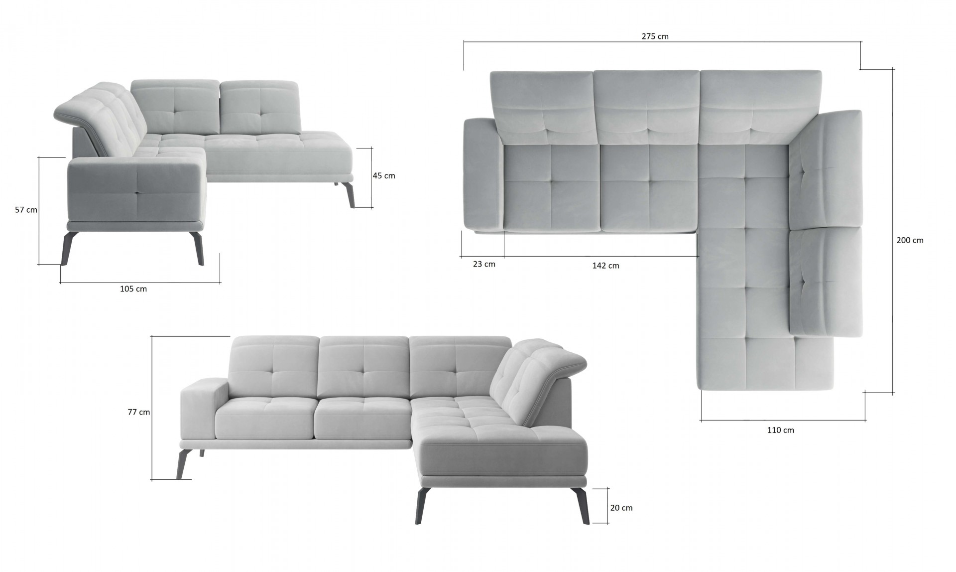 Sjedeća garnitura Theodore dostupna je u lijevom i desnom rasporedu, u 19 različitih boja i u mnogo različitih kvalitetnih tkanina, na kojima je sjedenje ugodno u svim godišnjim dobima. Među svim varijantama slobodno birate i odlučite se za onu koja će najbolje pristajati vašem domu te tako kreirajte unikatnu sofu koja će svakako biti u centru pažnje.