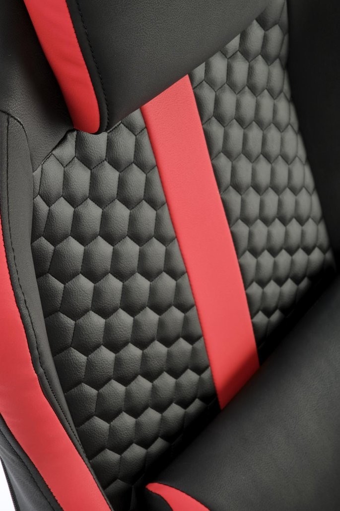 Ljuljačka Jarlin sa sklopivim naslonom i eko kožom u crno-crvenoj boji savršena je za igraće sobe. Funkcija ljuljanja osigurava dodatnu udobnost tijekom dužeg igranja ili opuštanja.