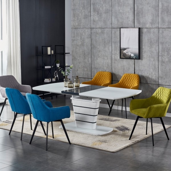 Opremite svoju blagovaonicu blagovaonskom stolicom HAKEN koja svojim jedinstvenim dizajnom i živim bojama oživljava i modernizira svaki dom! Presvučena je mekom baršunastom tkaninom koja vam nudi udobno sjedenje u svim godišnjim dobima! Stolica se može rotirati za 360 stupnjeva.