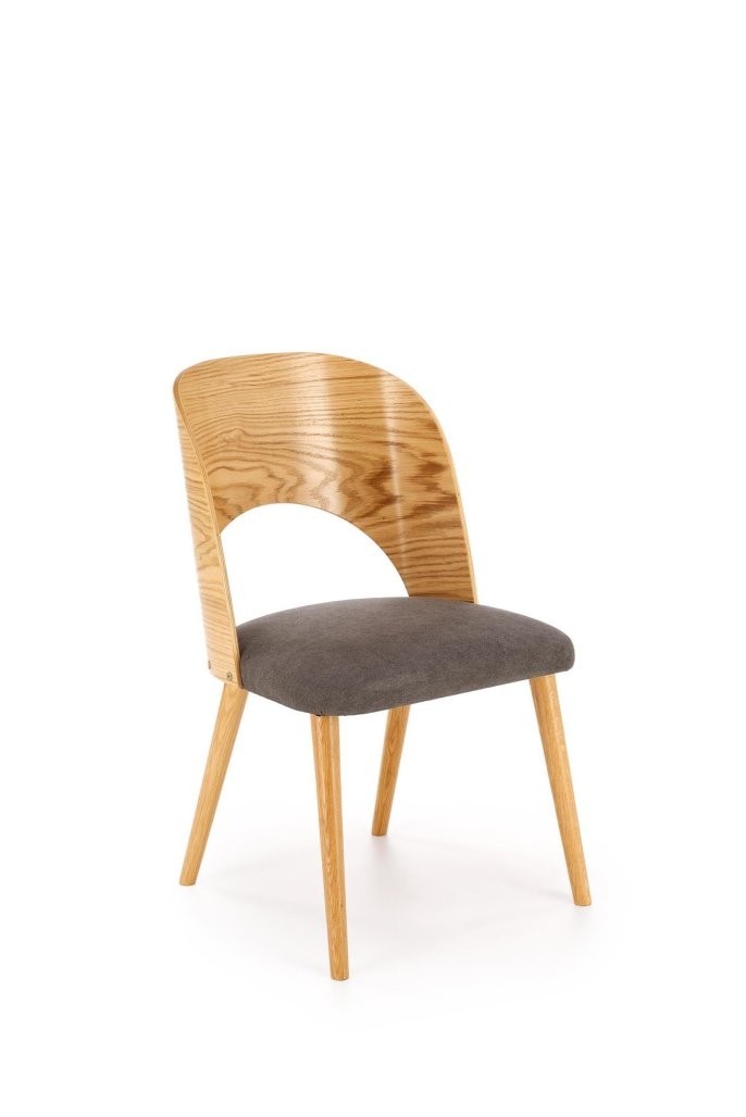 Stol za blagovaonicu Irion u retro stilu kombinira sivu tkaninu i hrastovo drvo, čineći ga idealnim za moderne interijere. Udobno sjedište visine je 45 cm.