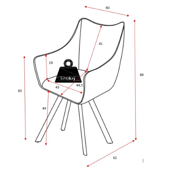 Uz izniman izgled, blagovaonska stolica MARBEL može se pohvaliti i udobnošću, jer ima tapecirana leđa i naslone za ruke. Presvučena je udobnom tkaninom u četiri različite boje koja vam nudi udobnost tijekom sjedenja u svim godišnjim dobima. Moderan izgled stolice uljepšava svaku kuhinju i blagovaonicu! Stolica se može rotirati za 180 stupnjeva, maksimalna nosivost je 120 kg.