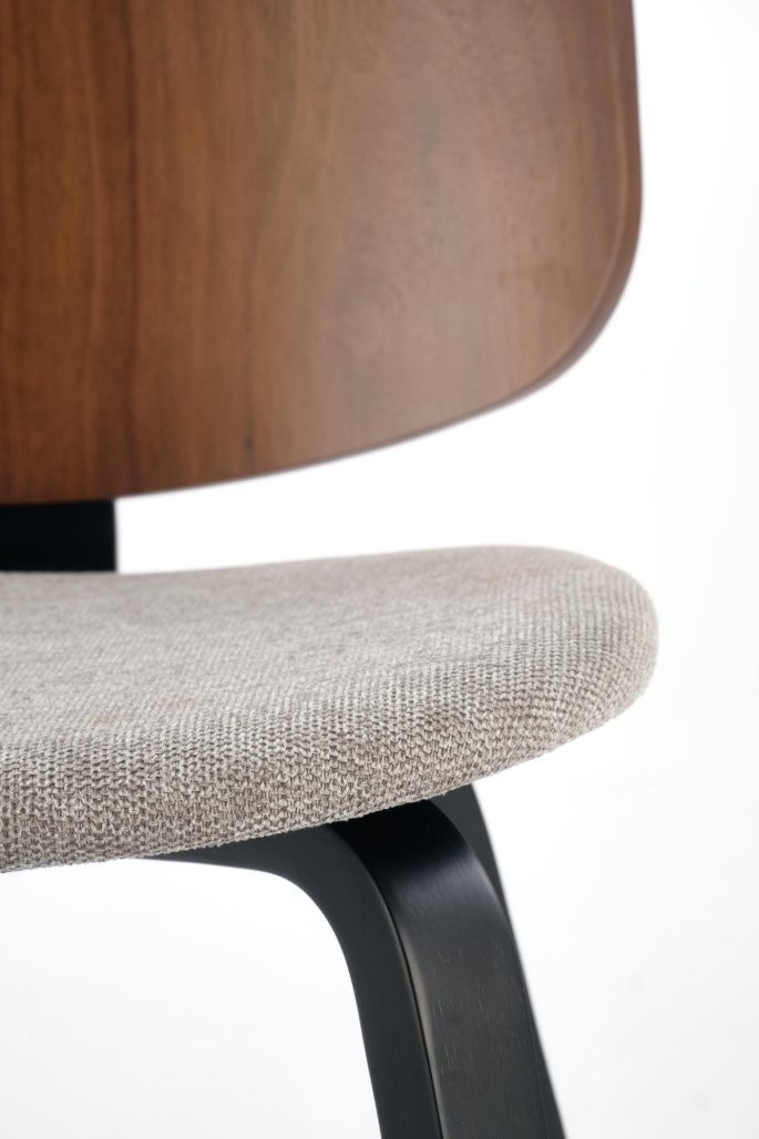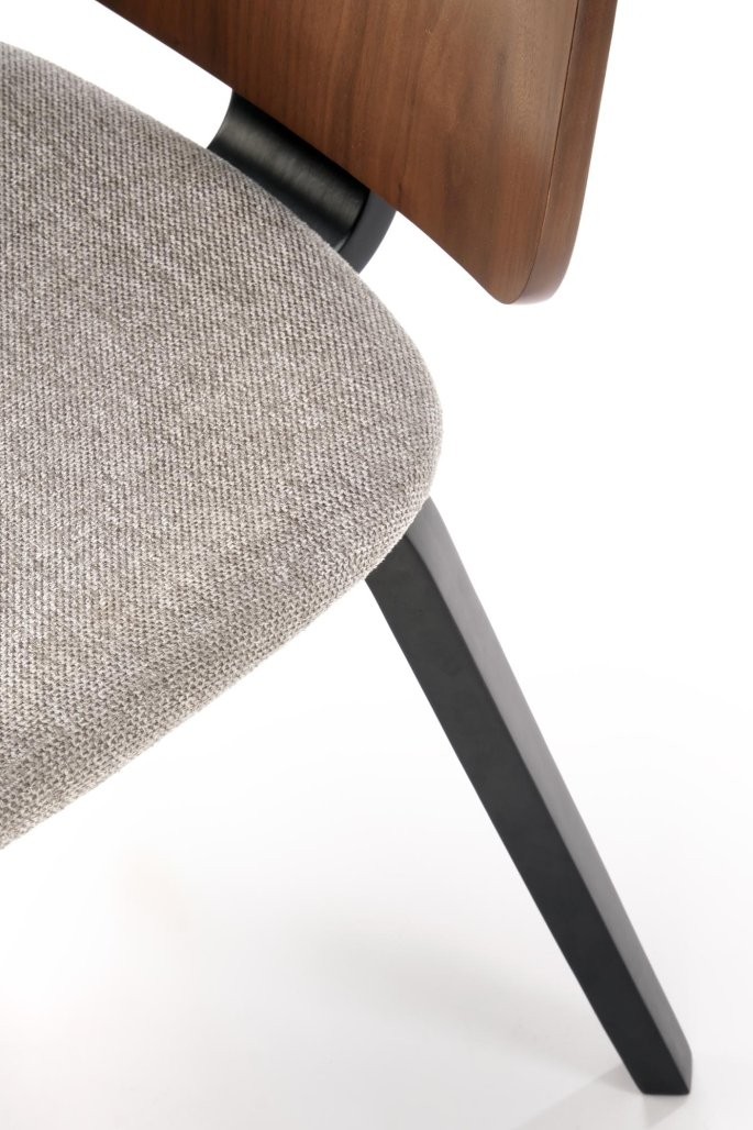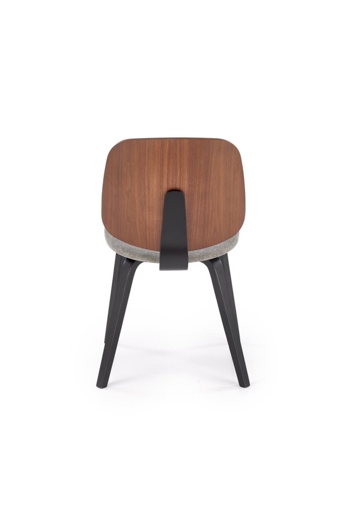 Blagovaonski stol Marin s klasičnim dizajnom koji spaja eleganciju oraha i udobnost sive tkanine. Savršen odabir za suvremeni ili klasični prostor.