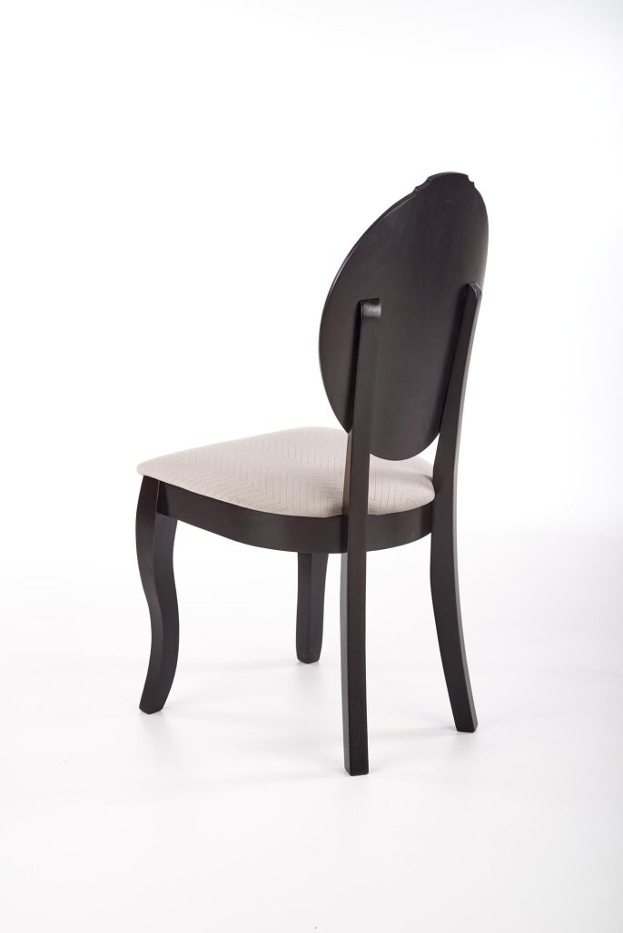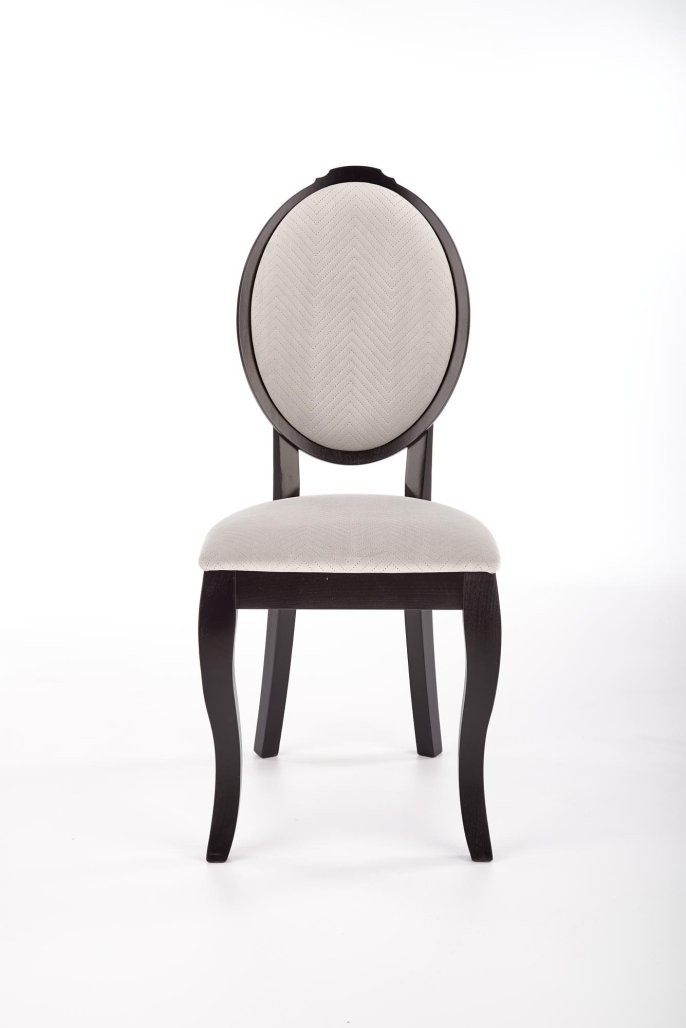 Stol Salven donosi klasičnu eleganciju s mekom bež tkaninom i čvrstim crnim drvenim okvirom. Idealna opcija za tradicionalno uređene blagovaonice ili dnevne prostore.