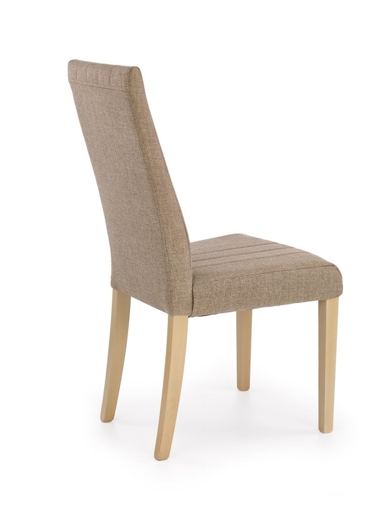 Stol za blagovanje Varlik od bukovog drva u boji sonoma hrasta kombinira bezvremensku eleganciju s toplim prirodnim izgledom. Udobna bež presvlaka osigurava ugodno sjedenje.