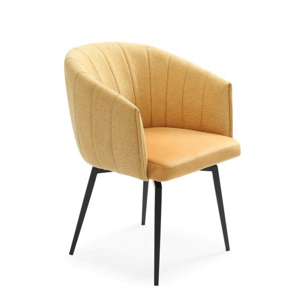 Opremite svoju blagovaonicu ili kuhinju modernom stolicom za blagovanje VIGO, dostupoj u četiri različite jarke boje. Nasloni za ruke nude vam dodatnu udobnost dok sjedite, a tkanina vam omogućuje udobno sjedenje u svim godišnjim dobima. Stolica se može okretati za 180 stupnjeva. Sjedalo je presvučeno mekim i glatkim baršunom, a naslovi u nešto grubljem materijalu.