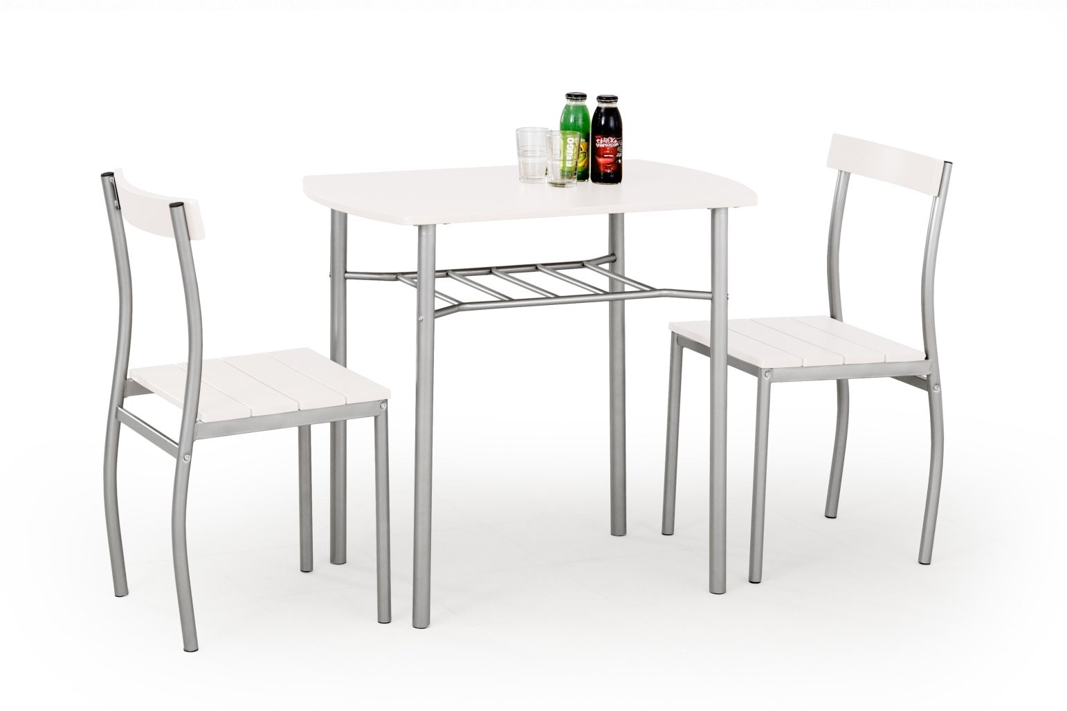 Blagovaonski set Sarn uključuje stol i dvije stolice, dostupne u bijeloj, sonoma hrast ili wenge boji. Laminirana MDF ploča i metalni okvir dodaju tradicionalni stil svakom prostoru.