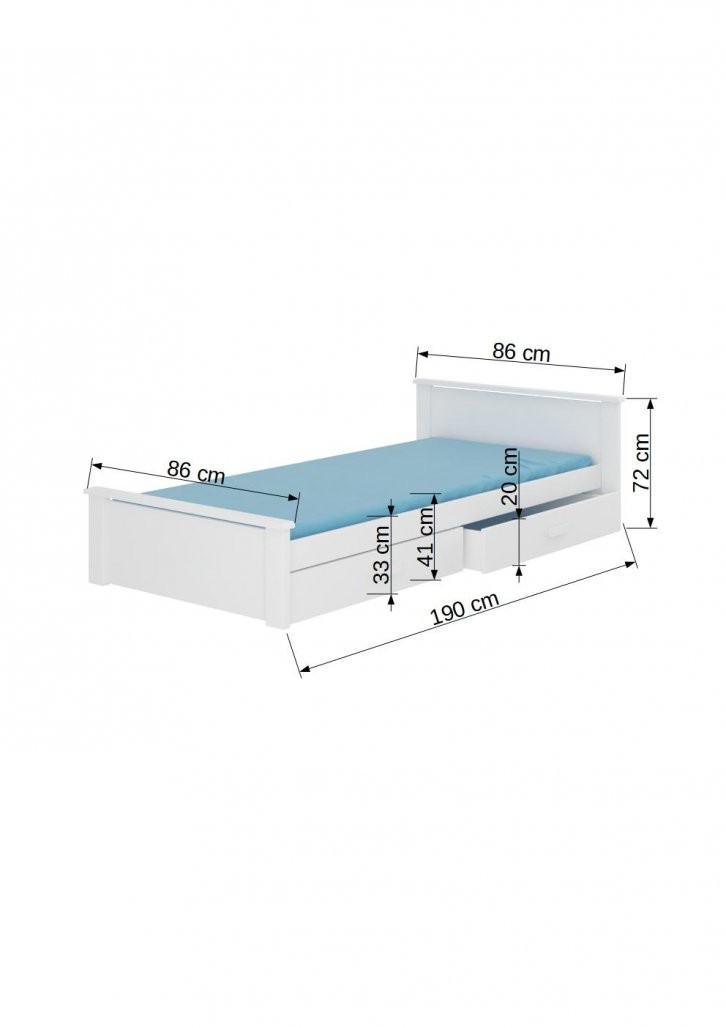 Jednokrevetni krevet ALDEX s dvije ladice 180x80 savršen je izbor za dječje i omladinske sobe. Svojim jednostavnim i modernim dizajnom lako se uklapa u različite stilove interijera. Dodatna funkcionalnost u obliku dvije prostrane ladice na kotačićima omogućuje praktično spremanje posteljine ili drugih stvari.