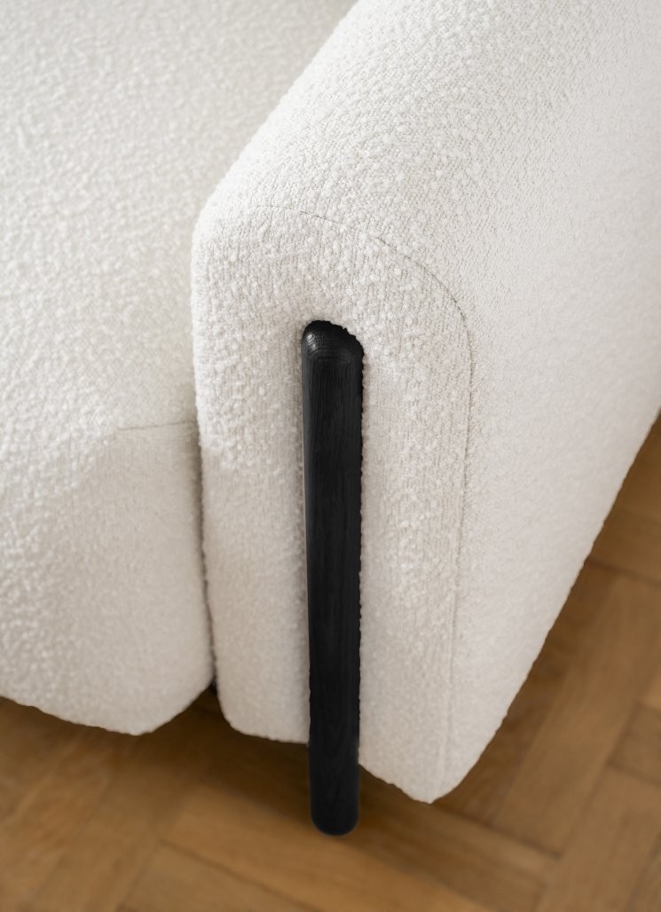 Arcadova se ističe dizajnerskim polukružnim naslonima za ruke koji joj daju jedinstven karakter. Opremljena je stabilnim crnim nogama za namještaj od masivnog drva, visokim 12 cm, koje pružaju elegantnu i čvrstu osnovu. Kombinacija stila i funkcionalnosti savršena je za svaki moderan dom.