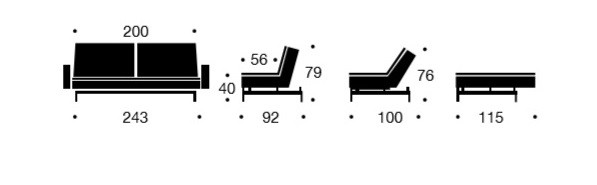 Leđna strana je podijeljena na dva dijela individualno i nastavljiva u tri položaje: kauč, opuštanje, čitanje. 3 položaji u leđnom dijelu su jako jednostavni za upotrebu i jaki i trajni.
