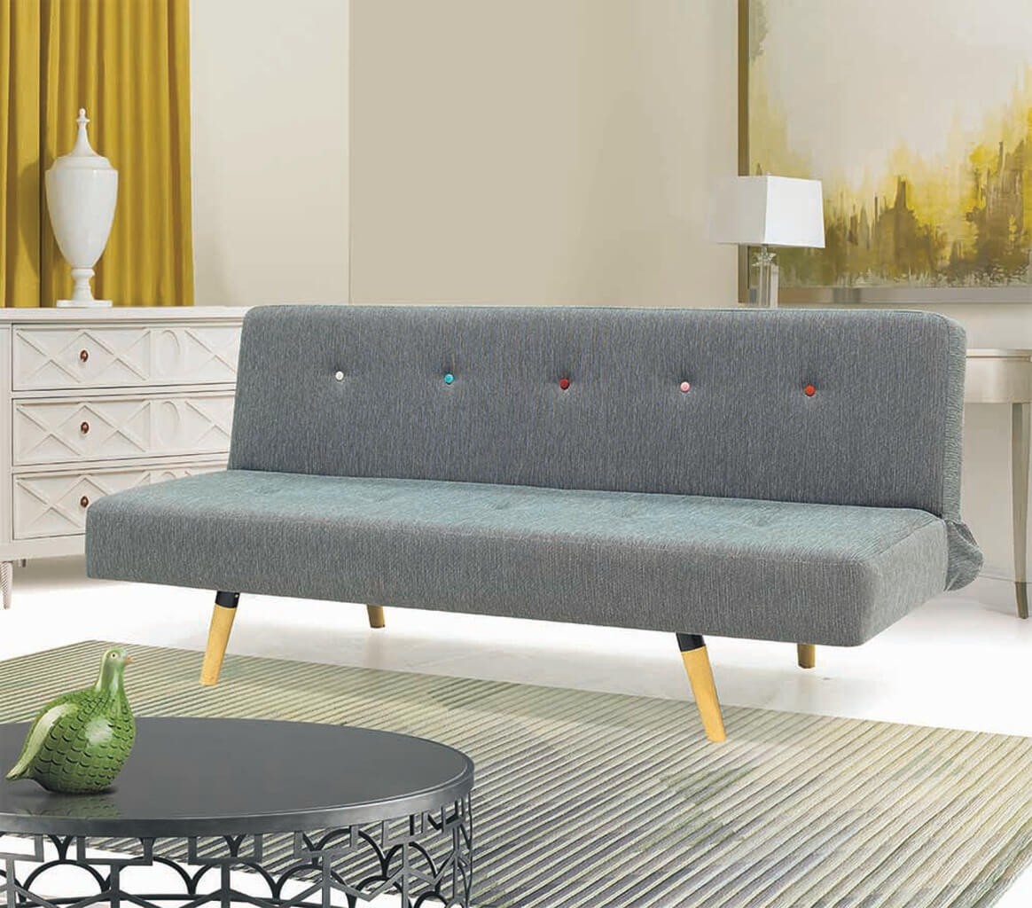 Kauč VEDIA nudi funkcionalnost i jedinstven dizajn s gumbima u boji koji uljepšavaju svaki dnevni boravak. Lako se pretvara u krevet dimenzija 103x183 cm, što je izvrsno za neočekivane goste. Sastoji se od metalnog profila, drvenih nogu i dvije različite vrste pjene, što omogućuje maksimalnu udobnost i opuštanje pri sjedenju. Maksimalna nosivost je 85 kg.