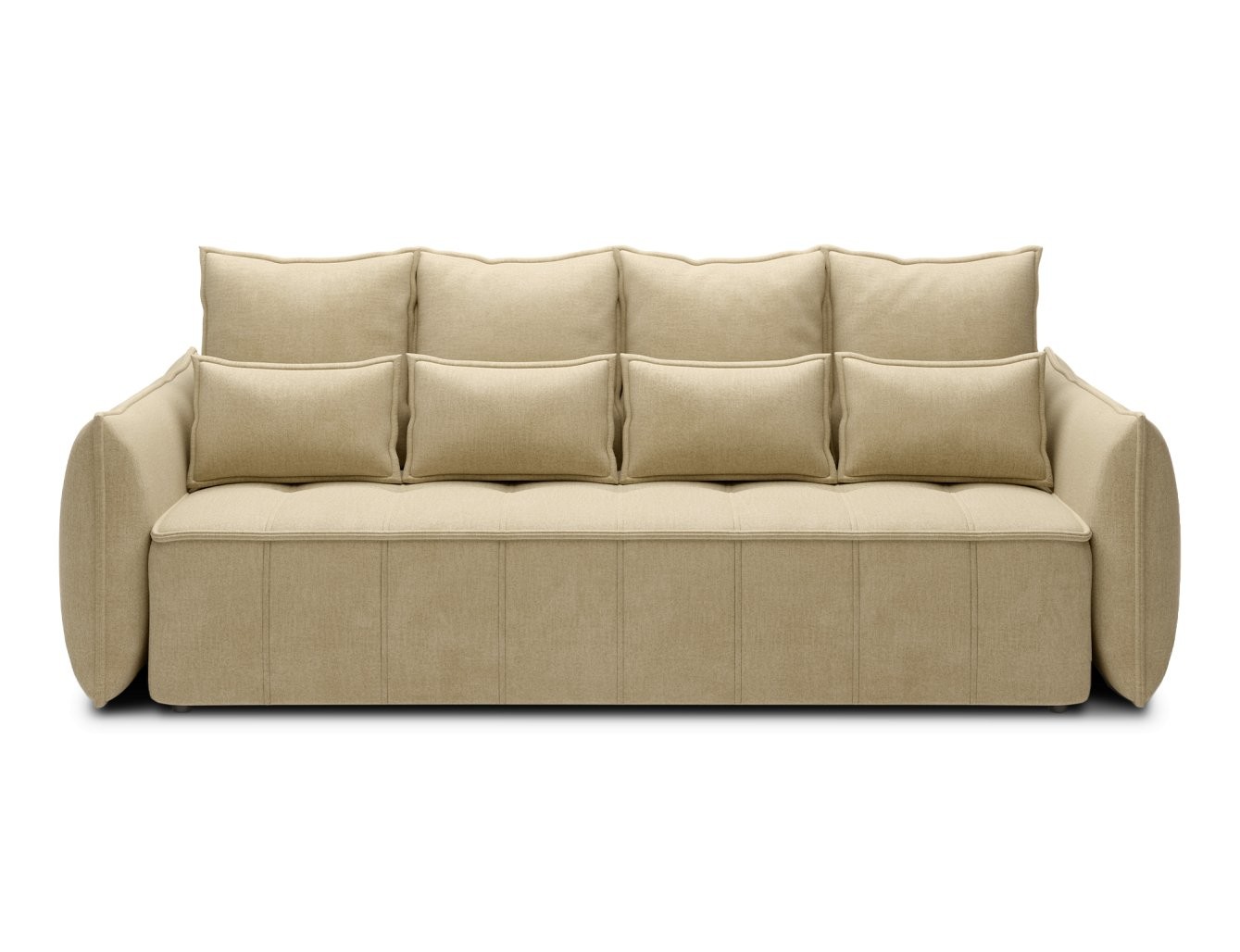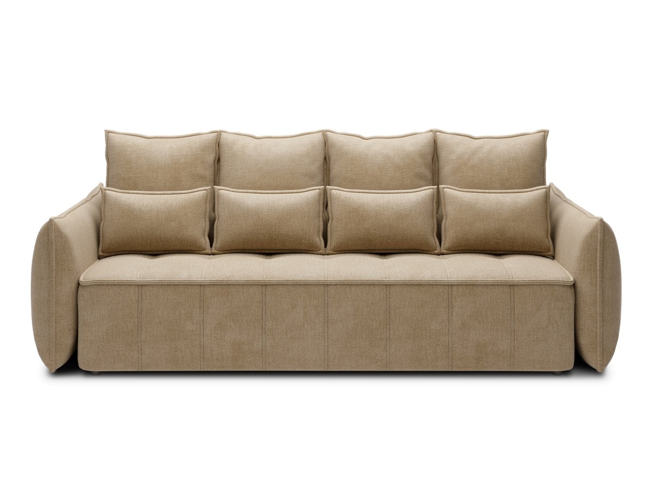 Sjedište je izrađeno od visokokvalitetne HR (visoko elastične) poliuretanske pjene, koja osigurava iznimnu udobnost i dugotrajnu izdržljivost. Naslon garniture opremljen je jastucima punjenim pjenastim granulama koje se savršeno prilagođavaju leđima i pružaju maksimalno opuštanje. Dodatna je prednost prostor za pohranu posteljine, koji omogućuje praktično spremanje pokrivača, jastuka i drugih dodataka, što pomaže u održavanju reda u vašem domu.