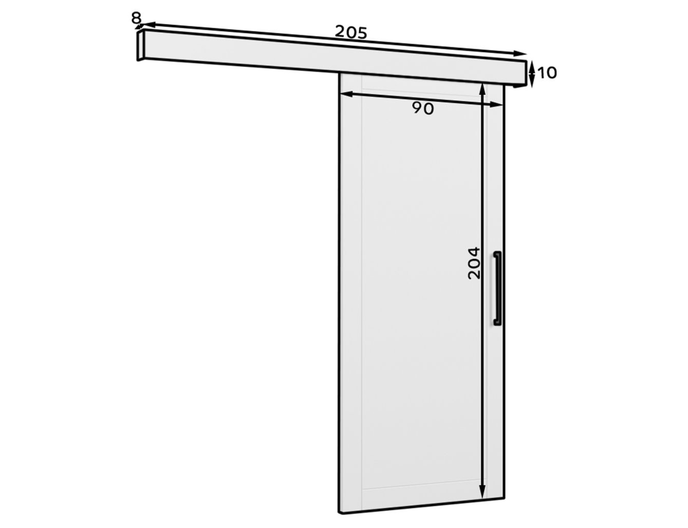 Vrata su izrađena od laminirane iverice i dizajnirana su tako da odgovaraju standardnim otvorima za vrata, dimenzija 90 cm širine i 204 cm visine. Opremljena su mehanizmom Laguna STANDARD 1990 s vodilicom od 195 cm, što omogućuje glatko i tiho klizanje. Komplet također uključuje pokrov od laminirane iverice i crnu plastičnu ručku.