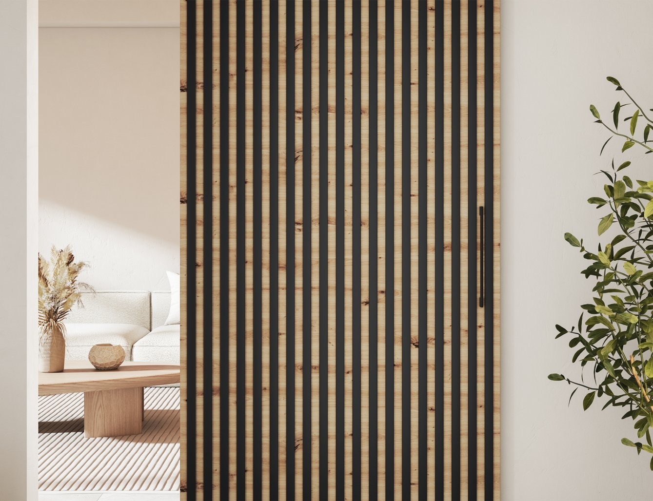 Klizna vrata Tauricio, dimenzija 96x205 cm, moderno su i funkcionalno rješenje za interijer koje će elegantno upotpuniti prostor uređen u minimalističkom ili industrijskom stilu. Izrađena su od izdržljive iverice i sintetičkog materijala u elegantnom mat crnom završnom sloju. Ova klizna vrata nisu samo estetska, već su dizajnirana za optimalno iskorištavanje prostora, što ih čini idealnima za korištenje kao sobna pregrada, vrata ormara, ostave ili ureda.