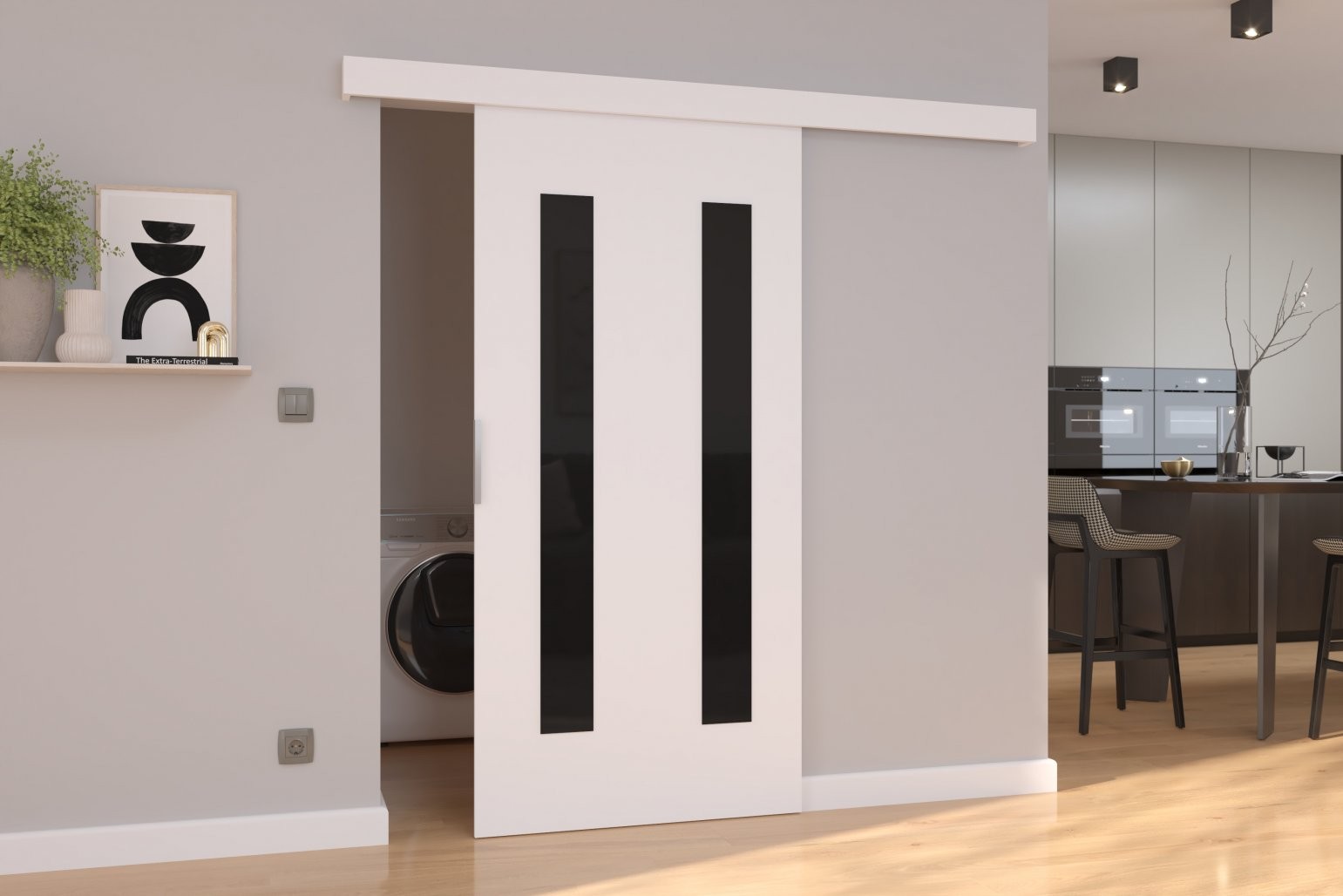 Klizna zidna vrata HERS s lakobel detaljima nude elegantno rješenje za odvajanje prostora, s mogućnošću izbora širine, boje i dodatkom funkcije samozatvaranja.