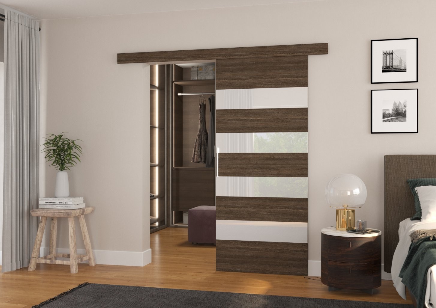 Klizna zidna vrata MILOU 96 s lakobel detaljima idealna su za moderan dom – vizualno povećavaju prostor i omogućuju elegantno odvajanje prostorija.