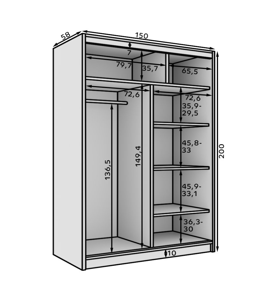Ormar Calma 150 dostupan je u više elegantnih kombinacija boja, što omogućuje savršeno uklapanje u vaš prostor i stil. Kvalitetna izrada osigurava dugotrajnost i pouzdano funkcioniranje kliznih vrata.