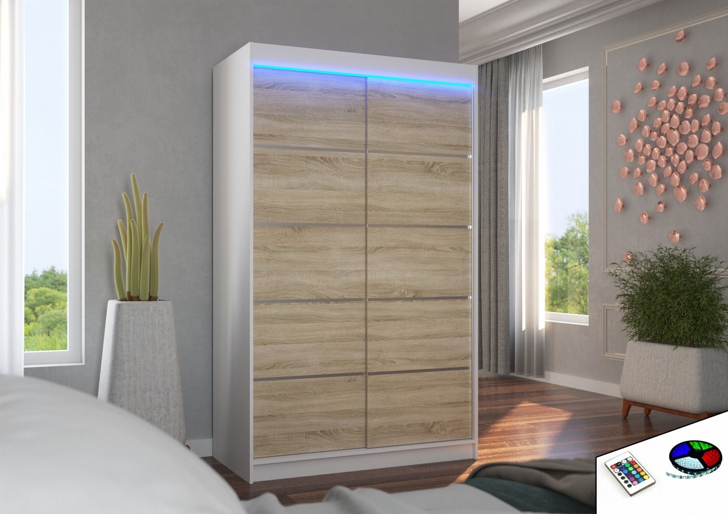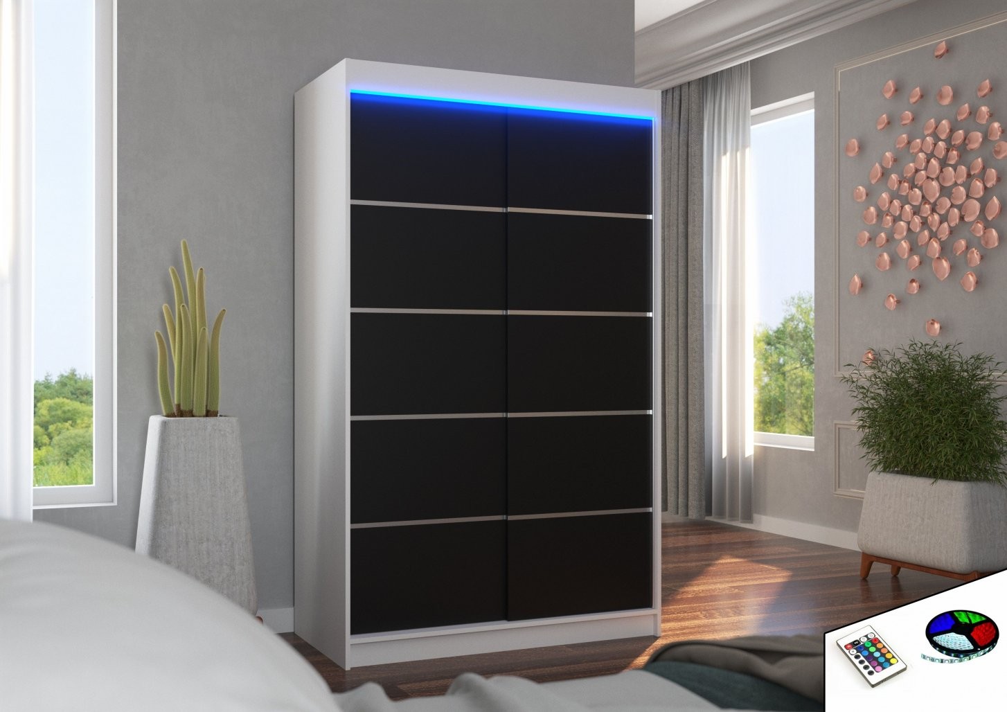 Klizni ormar BENISSO 120 s LED rasvjetom savršen je izbor za one koji traže funkcionalno i elegantno rješenje za pohranu odjeće i dodataka. Zahvaljujući kliznim vratima, idealan je za manje prostore jer ne zahtijeva dodatni prostor za otvaranje.