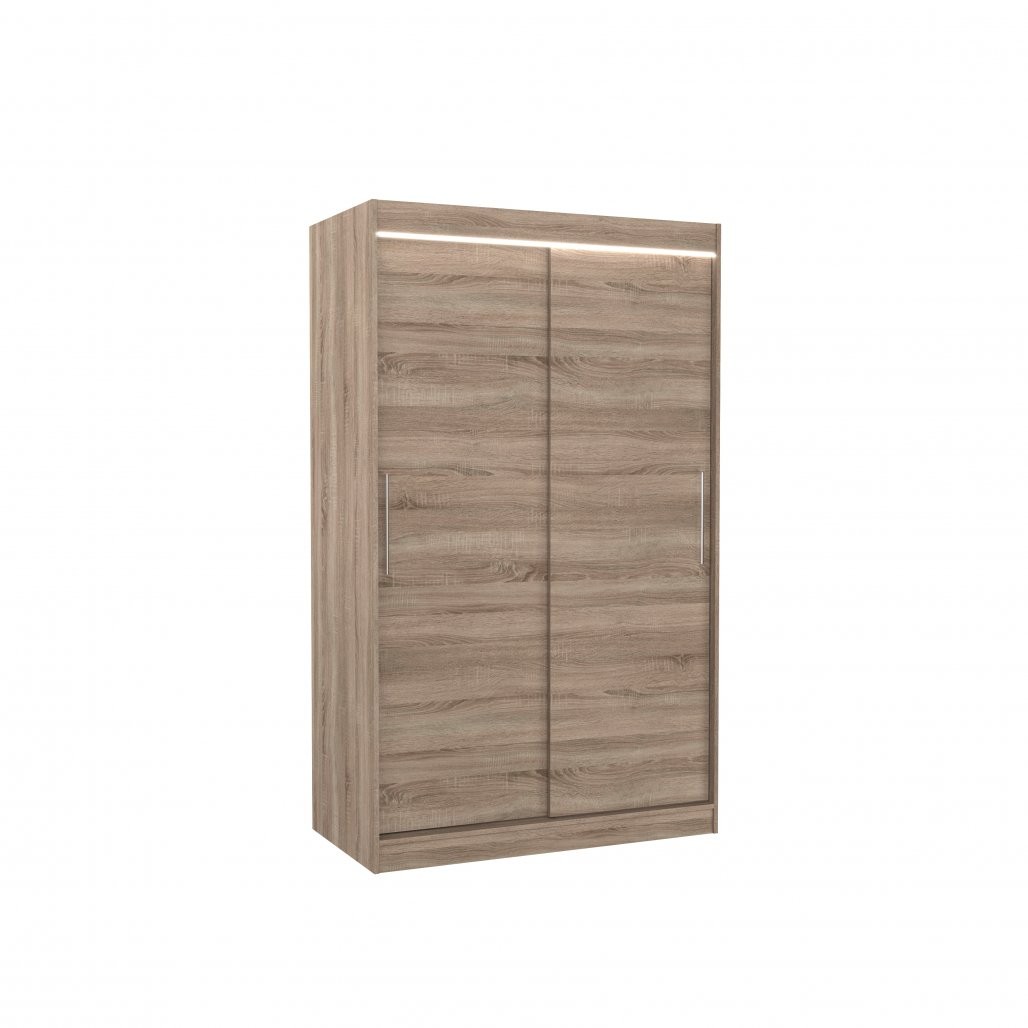 Klizni ormar COLLIN 120 s LED rasvjetom savršeno je rješenje za organizaciju prostora, osobito u manjim sobama ili uskim hodnicima. Zahvaljujući kliznim vratima, ne zauzima dodatni prostor pri otvaranju, a LED rasvjeta dodaje moderan i elegantan izgled.