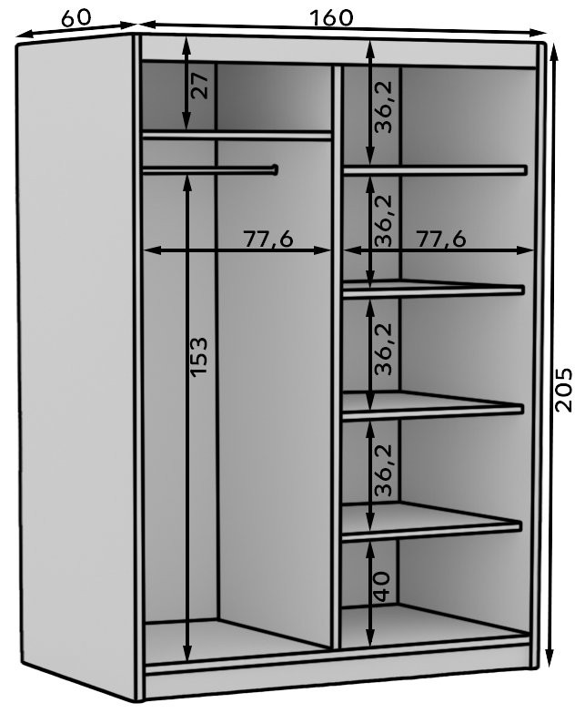 Klizni ormar Delia s drvenim letvicama 160 cm (bijela-hrast) savršen je izbor za one koji traže funkcionalno i estetski privlačno rješenje za pohranu. Sa svojim elegantnim dizajnom i toplim drvenim tonovima lako se uklapa u razne stilove interijera.