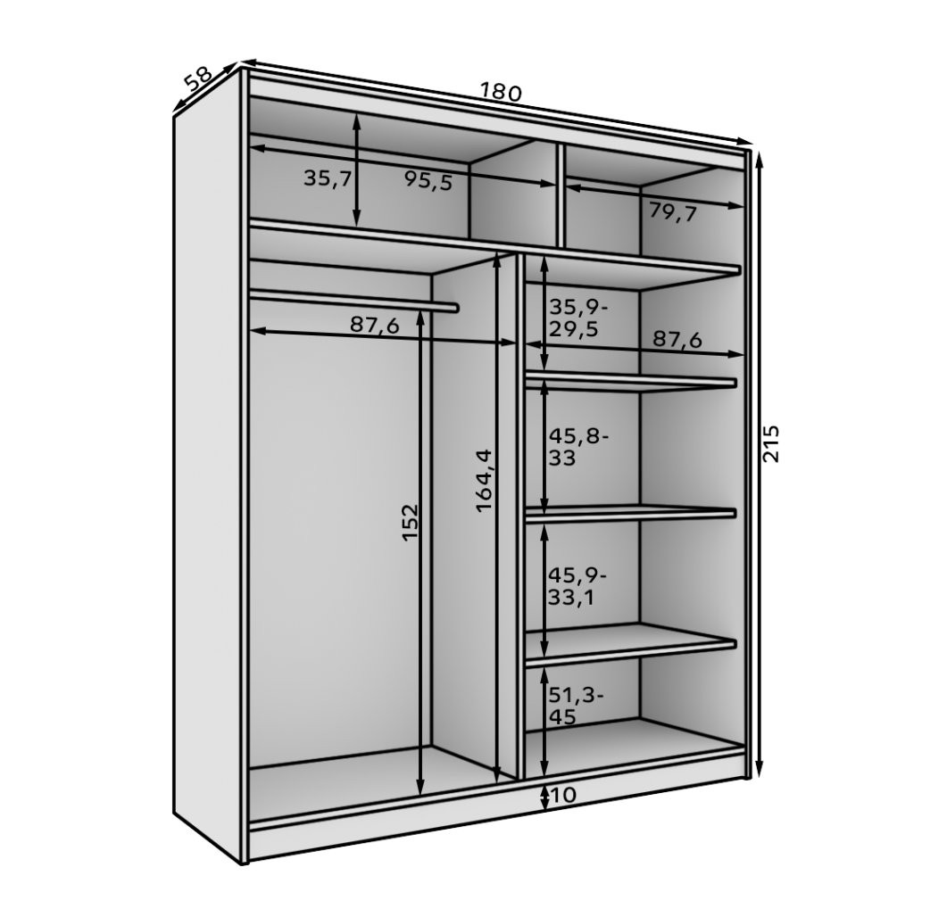 Klizni ormar Hannah 180 cm je moderan i funkcionalan komad namještaja, idealan za one koji cijene eleganciju i praktičnost. Sa širinom od 180 cm nudi dovoljno prostora za organizirano spremanje odjeće i dodataka, dok klizna vrata omogućuju jednostavno korištenje i uštedu prostora.