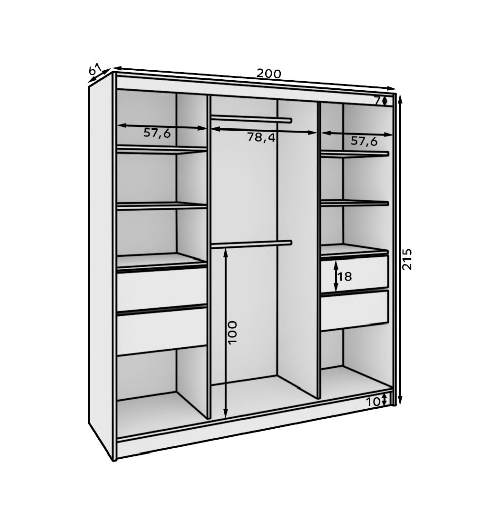 • Dimenzije: Širina: 200 cm, Visina: 215 cm, Dubina: 61 cm