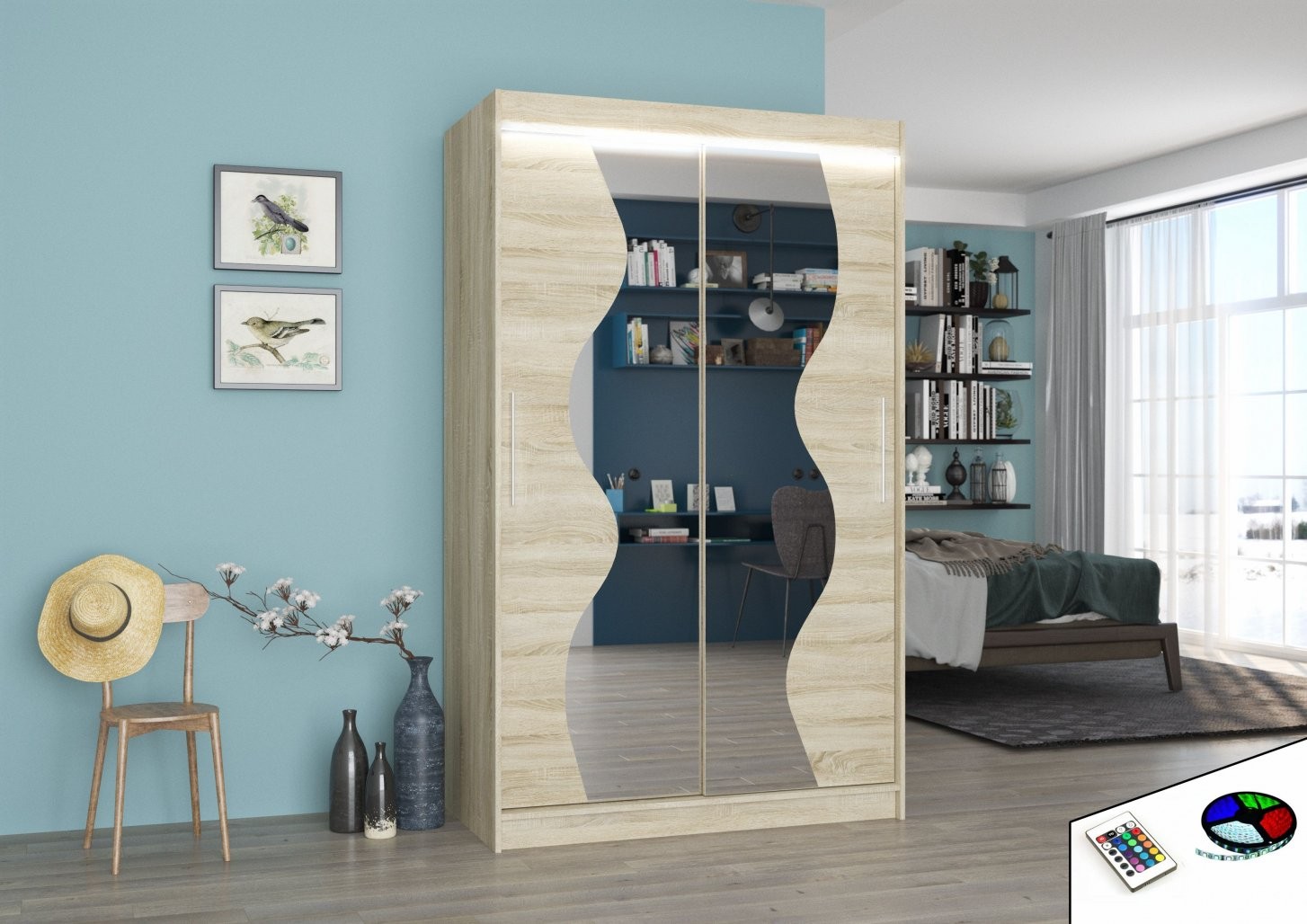 Ormar je opremljen valovitim ogledalima koja vizualno povećavaju prostor i LED rasvjetom koja dodaje sofisticiran izgled i poboljšava vidljivost.