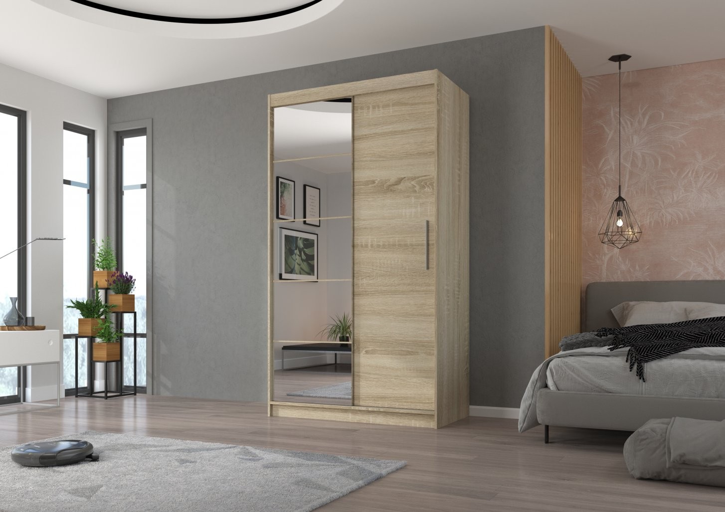 Klizni ormar s ogledalom ESTI, 180 cm savršen je izbor za svaki dom koji traži praktično i elegantno rješenje za pohranu. Zahvaljujući kliznim vratima, idealan je za manje prostore jer ne zahtijeva dodatni prostor za otvaranje.