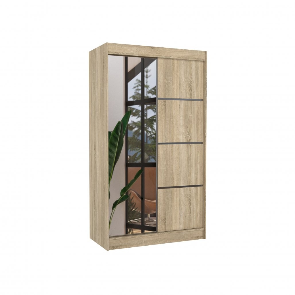Klizni ormar s ogledalom GILTON 120 cm savršen je izbor za one koji traže praktično i elegantno rješenje za pohranu odjeće i dodataka. Moderan dizajn s ogledalom i dekorativnim linijama savršeno se uklapa u svaki prostor, osobito u manje sobe i hodnike.
