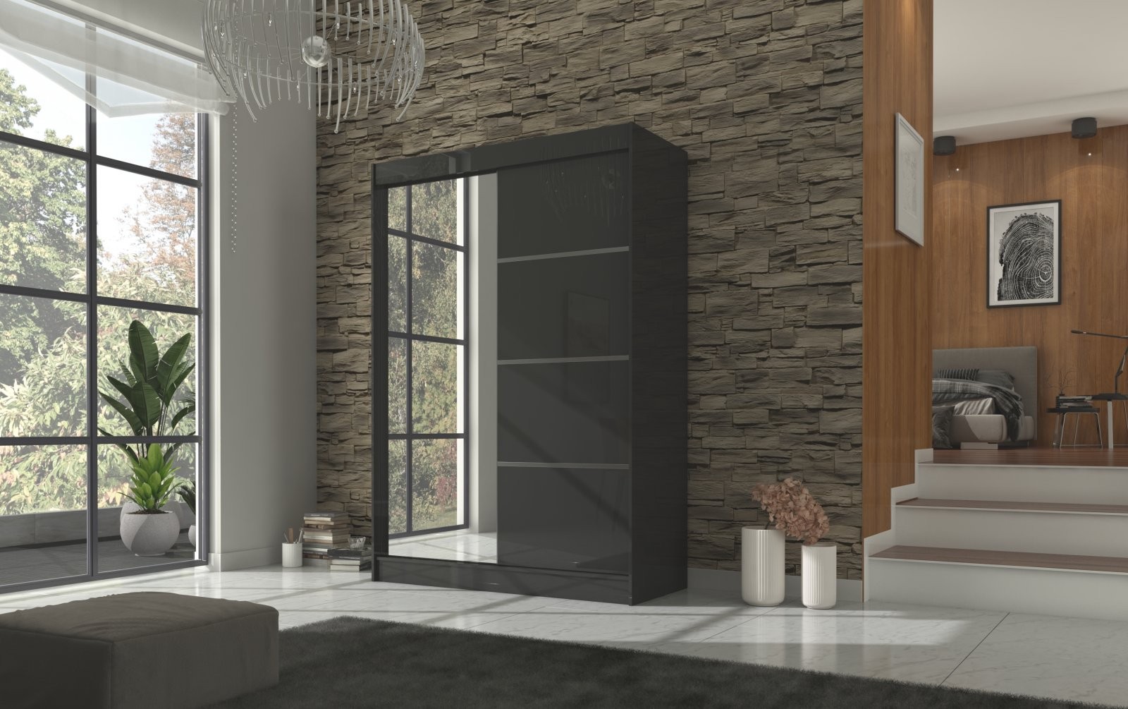 Klizni ormar s ogledalom GILTON 120 cm savršen je izbor za one koji traže praktično i elegantno rješenje za pohranu odjeće i dodataka. Moderan dizajn s ogledalom i dekorativnim linijama savršeno se uklapa u svaki prostor, osobito u manje sobe i hodnike.