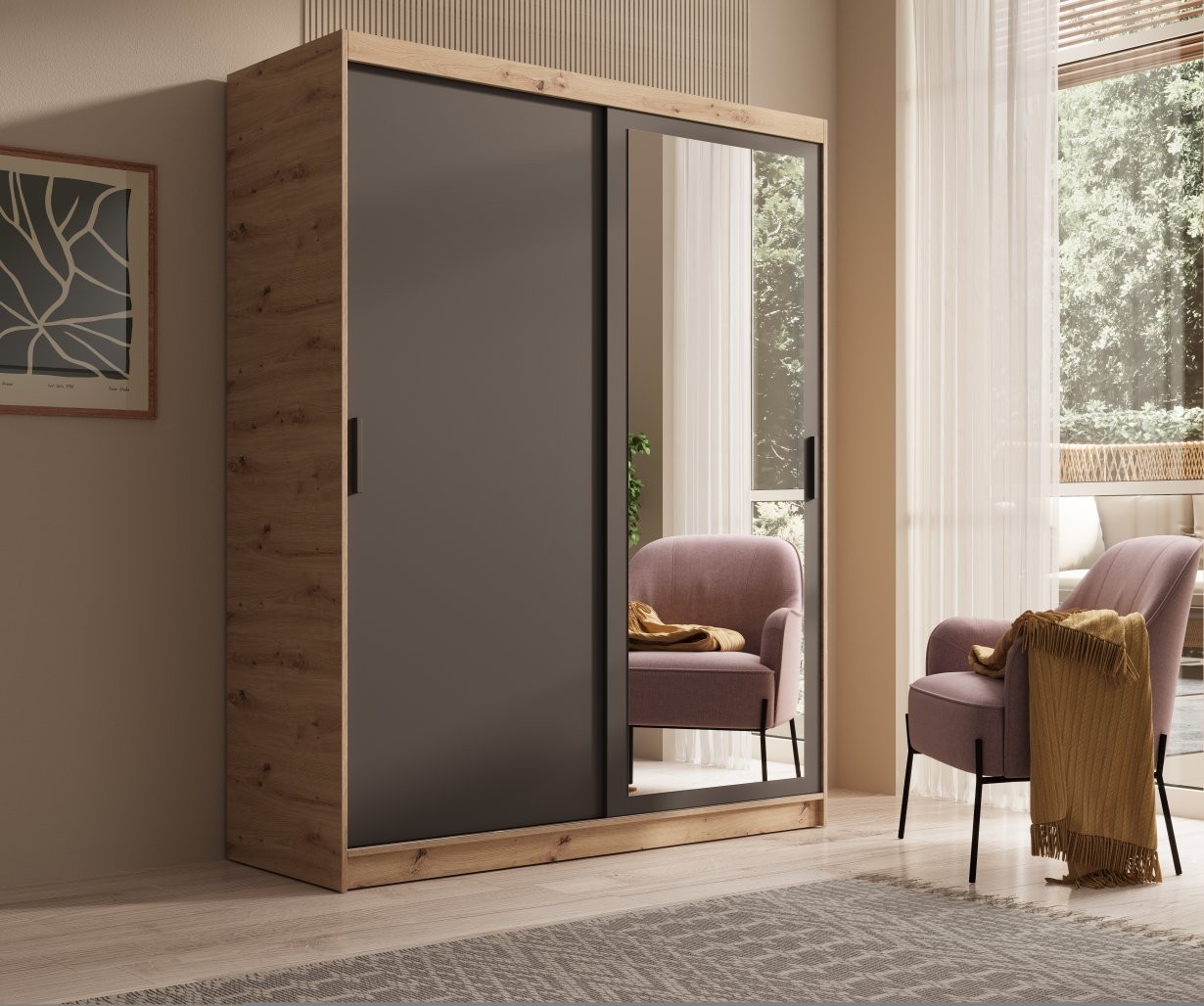 Klizni ormar s ogledalom Hailey 180 cm donosi eleganciju i funkcionalnost uz ogledalna vrata i razne dimenzije – savršen izbor za moderan i organiziran dom.