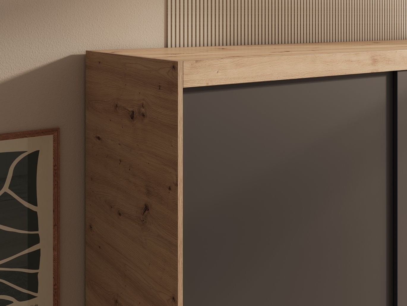 Ormar Hailey idealan je za spavaće sobe, hodnike ili druge prostore gdje želite spojiti funkcionalnost i stil. Unesite red, harmoniju i eleganciju u svoj dom s ovim modernim komadom namještaja.