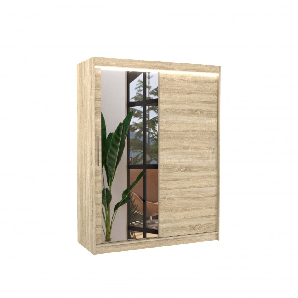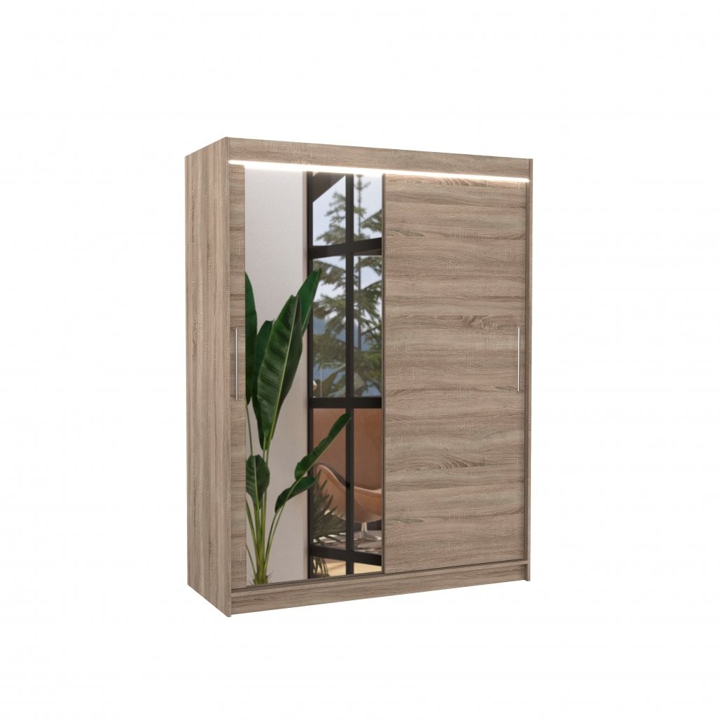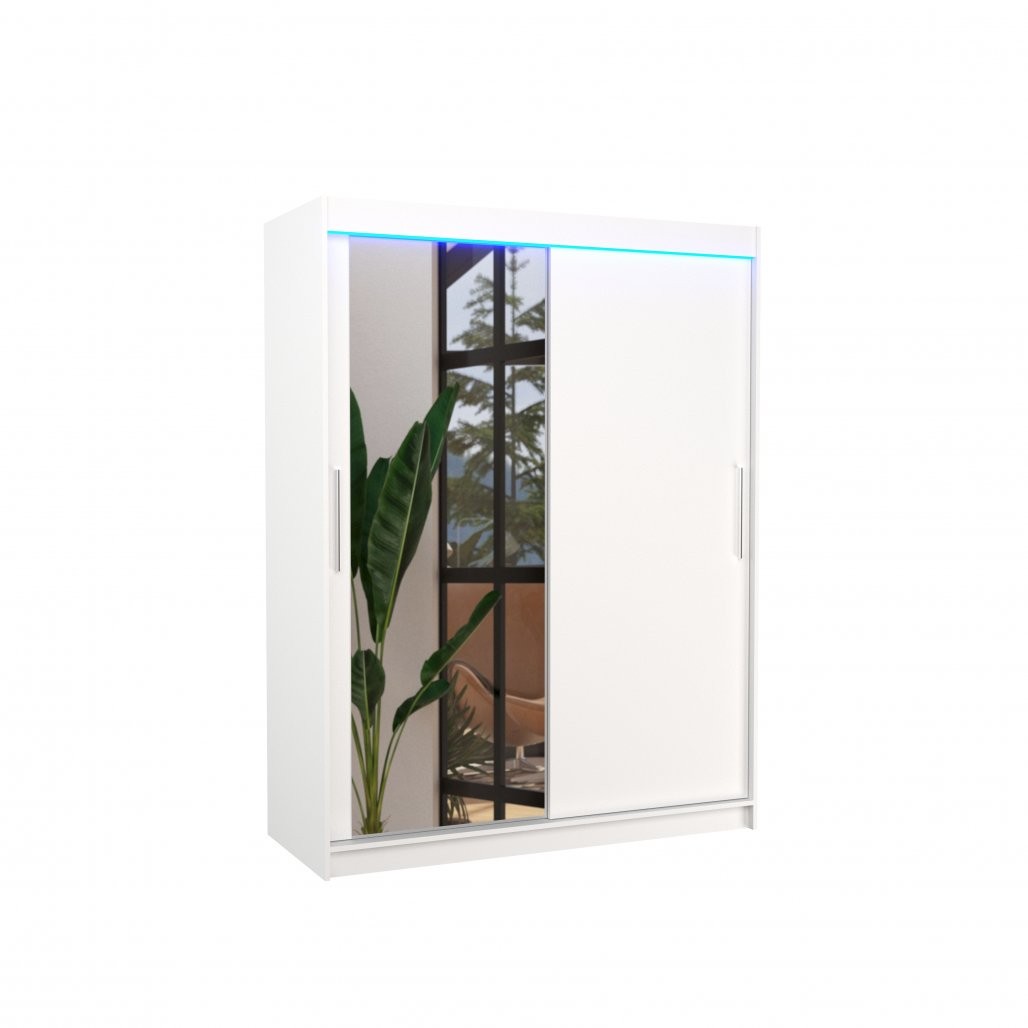 Klizni ormar s ogledalom i LED rasvjetom BIANCO 150 savršen je izbor za one koji traže funkcionalno i estetski privlačno rješenje za pohranu odjeće u manjim prostorima.