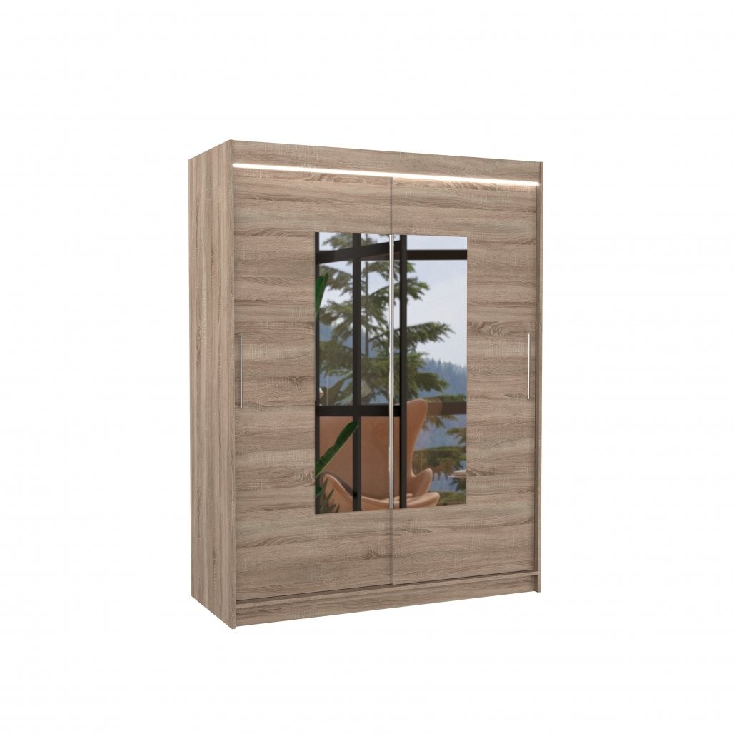 Klizni ormar s ogledalom i LED rasvjetom DORRIGO 150 savršeno je rješenje za one koji traže funkcionalnost i eleganciju u jednom komadu namještaja. Sa svojim modernim dizajnom i praktičnim značajkama idealan je za spavaće sobe, hodnike ili manje prostore.