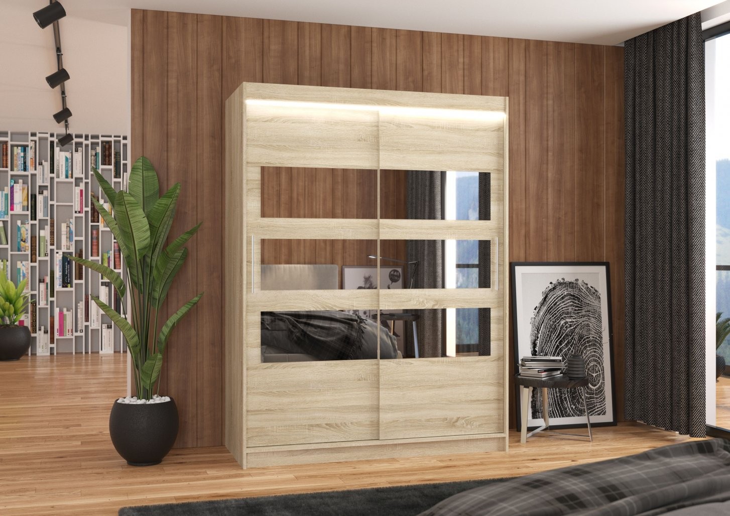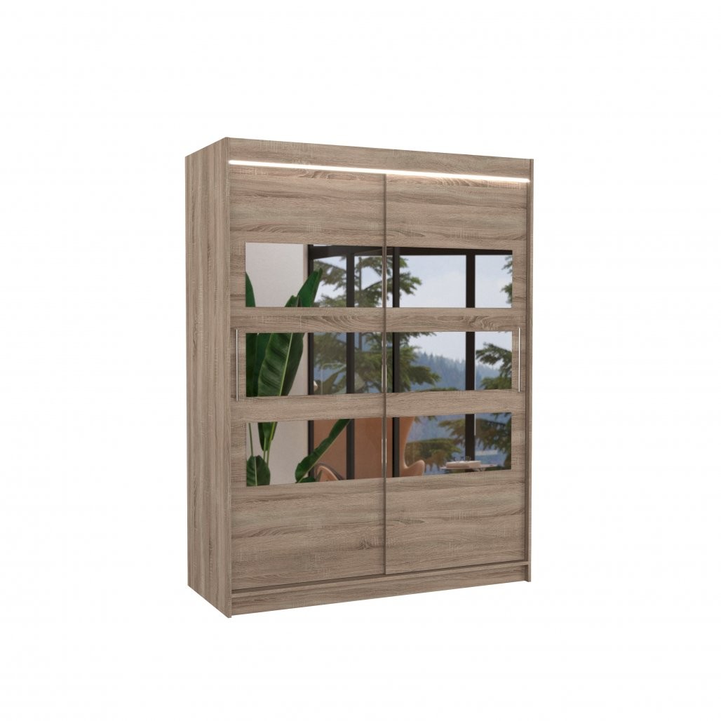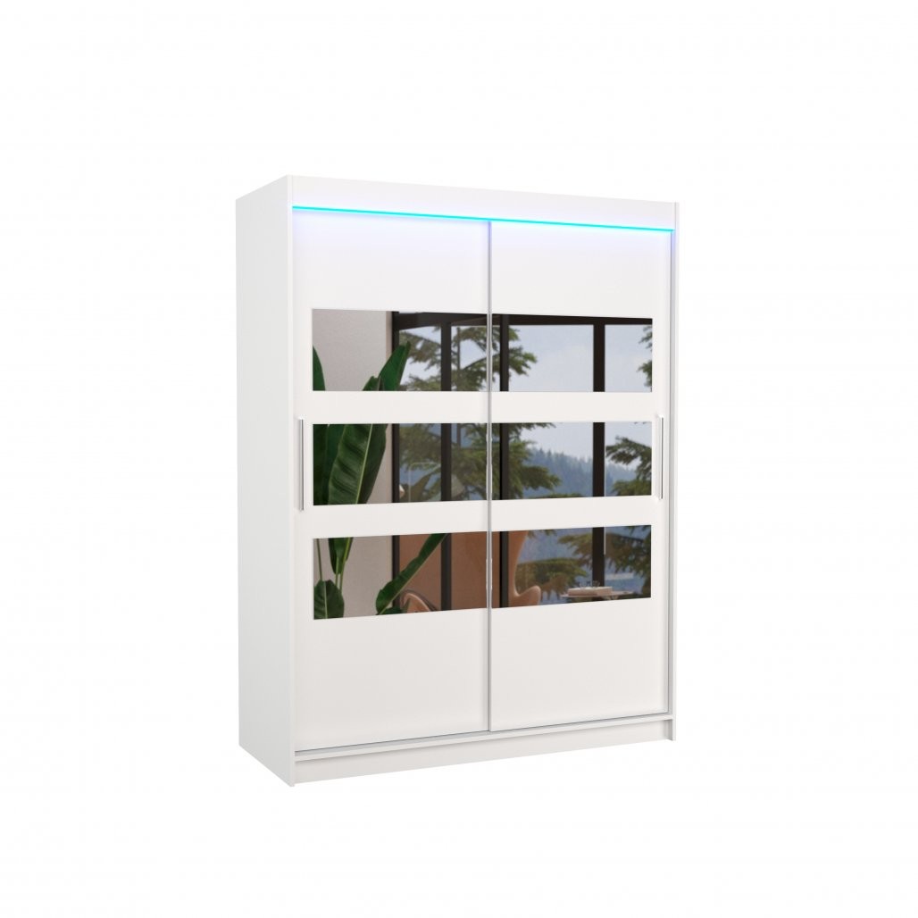 Klizni ormar s ogledalom i LED rasvjetom FLORENTO 150 predstavlja savršeno rješenje za pohranu vaše odjeće i dodataka. Svojim modernim dizajnom i praktičnim značajkama idealan je za spavaće sobe, hodnike ili manje prostore.